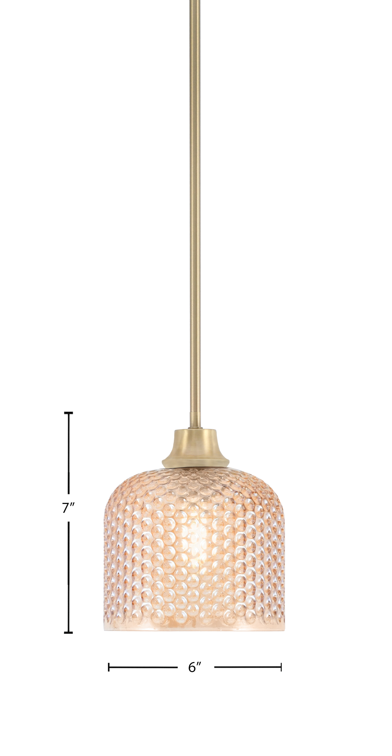 Toltec Lighting, 33-GP-4613, 1 Light Stem Pendant, New Age Brass Finish, 6″ Amber Textured Glass Shade