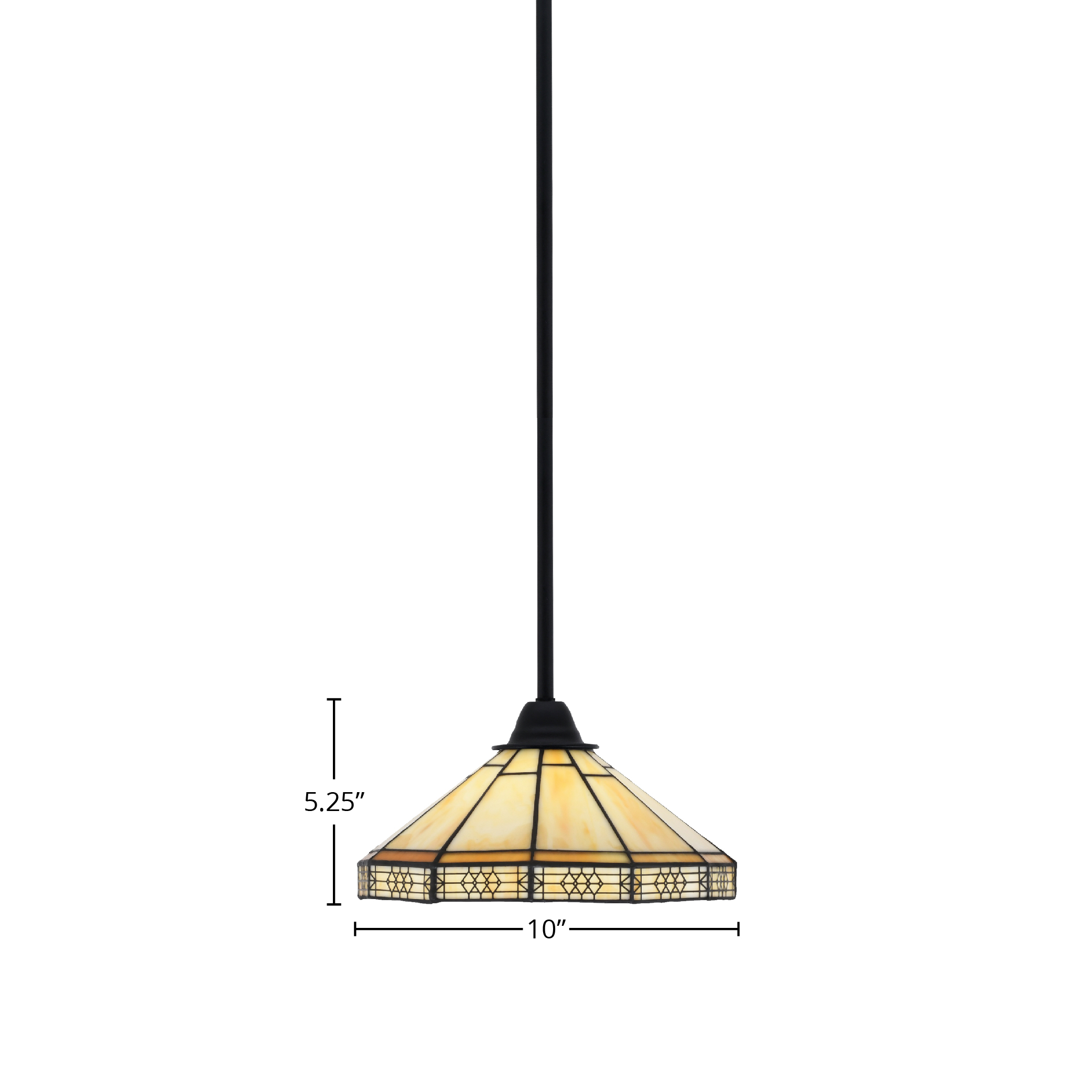 Toltec Lighting 3401-MB-144 Paramount Stem Hung Mini Pendant, Matte Black Finish, 10″ Mission Art Glass