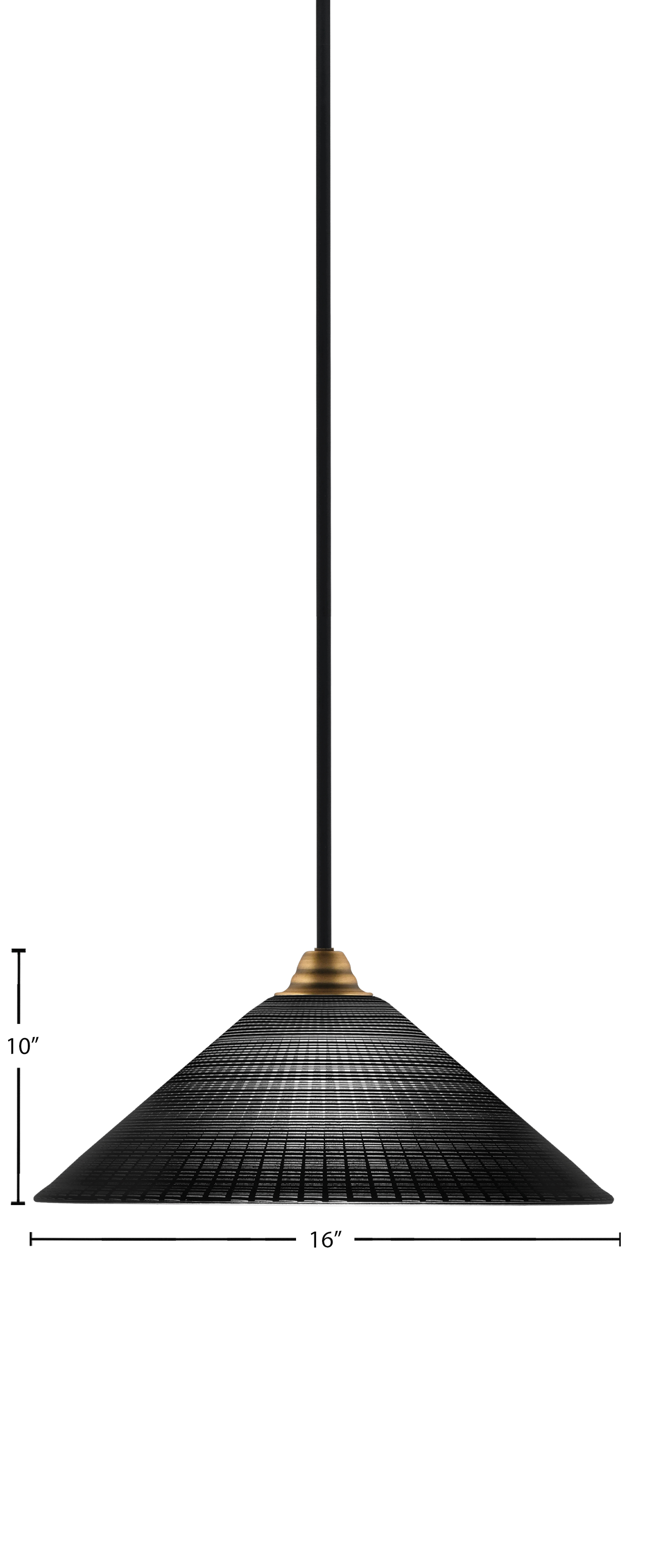 Toltec Lighting 3401-MBBR-4019 Paramount Stem Hung Mini Pendant, Matte Black & Brass Finish, 16″ Black Matrix Glass