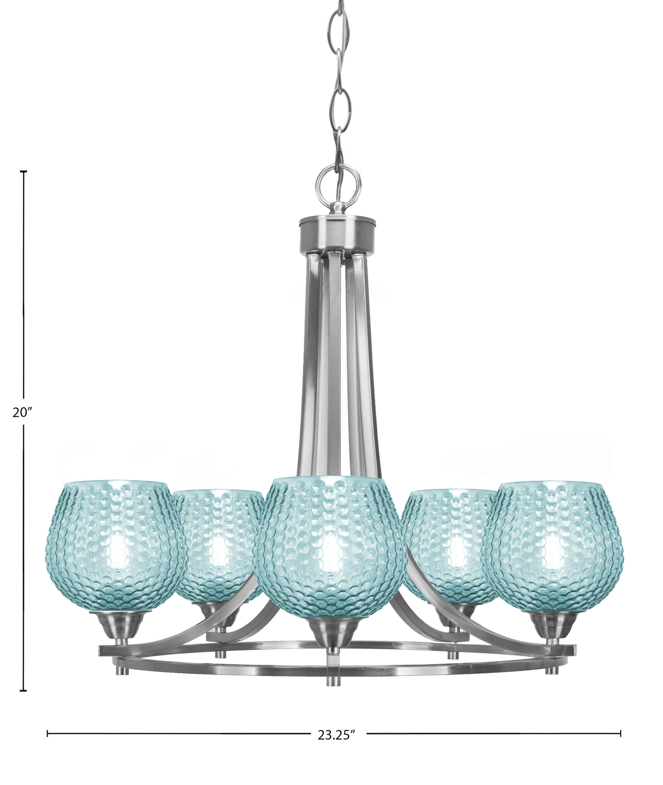 Toltec Lighting 3405-BN-4605 Paramount 5 Light Uplight Chandelier, Brushed Nickel Finish, 6″ Turquoise Textured Glass