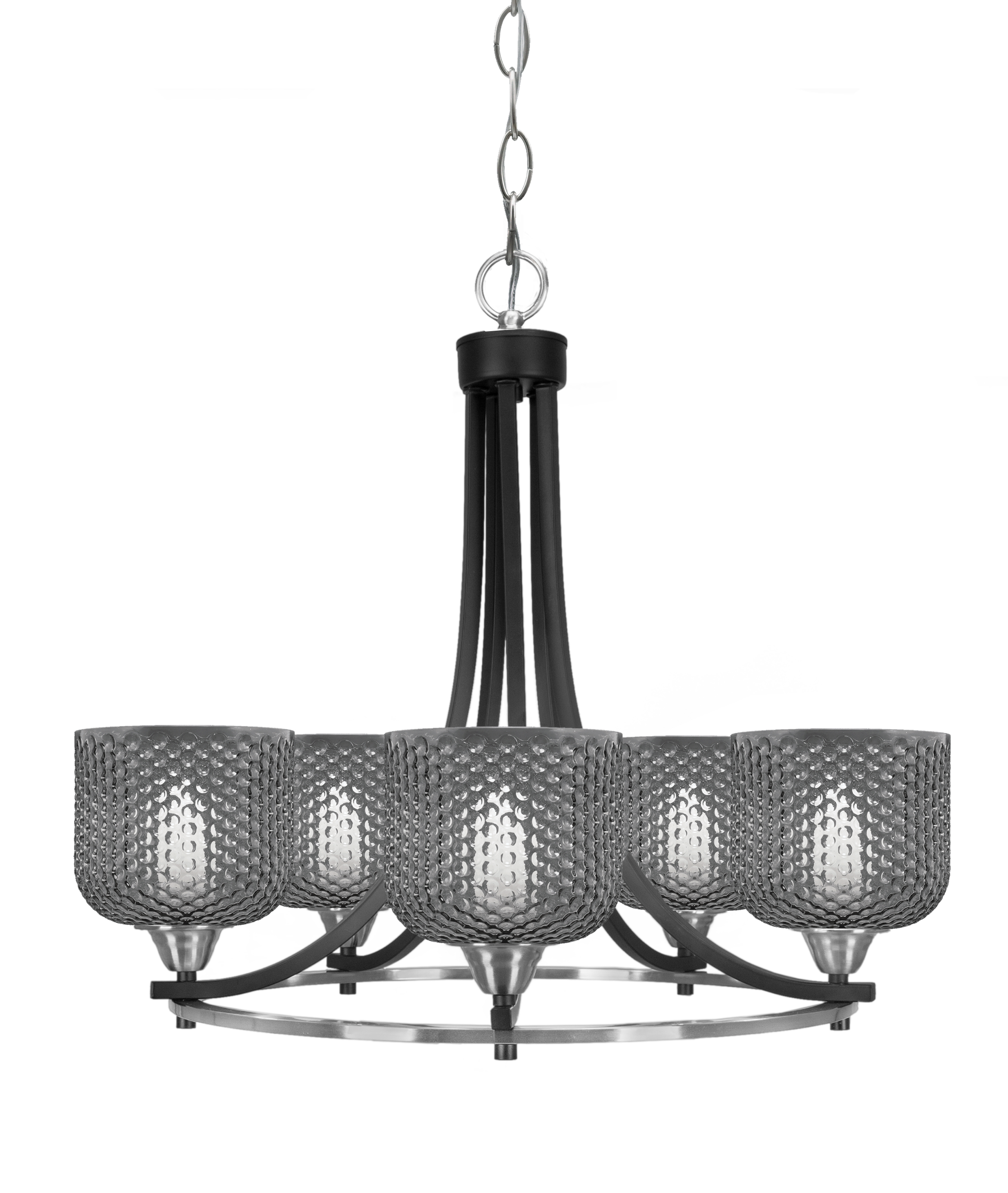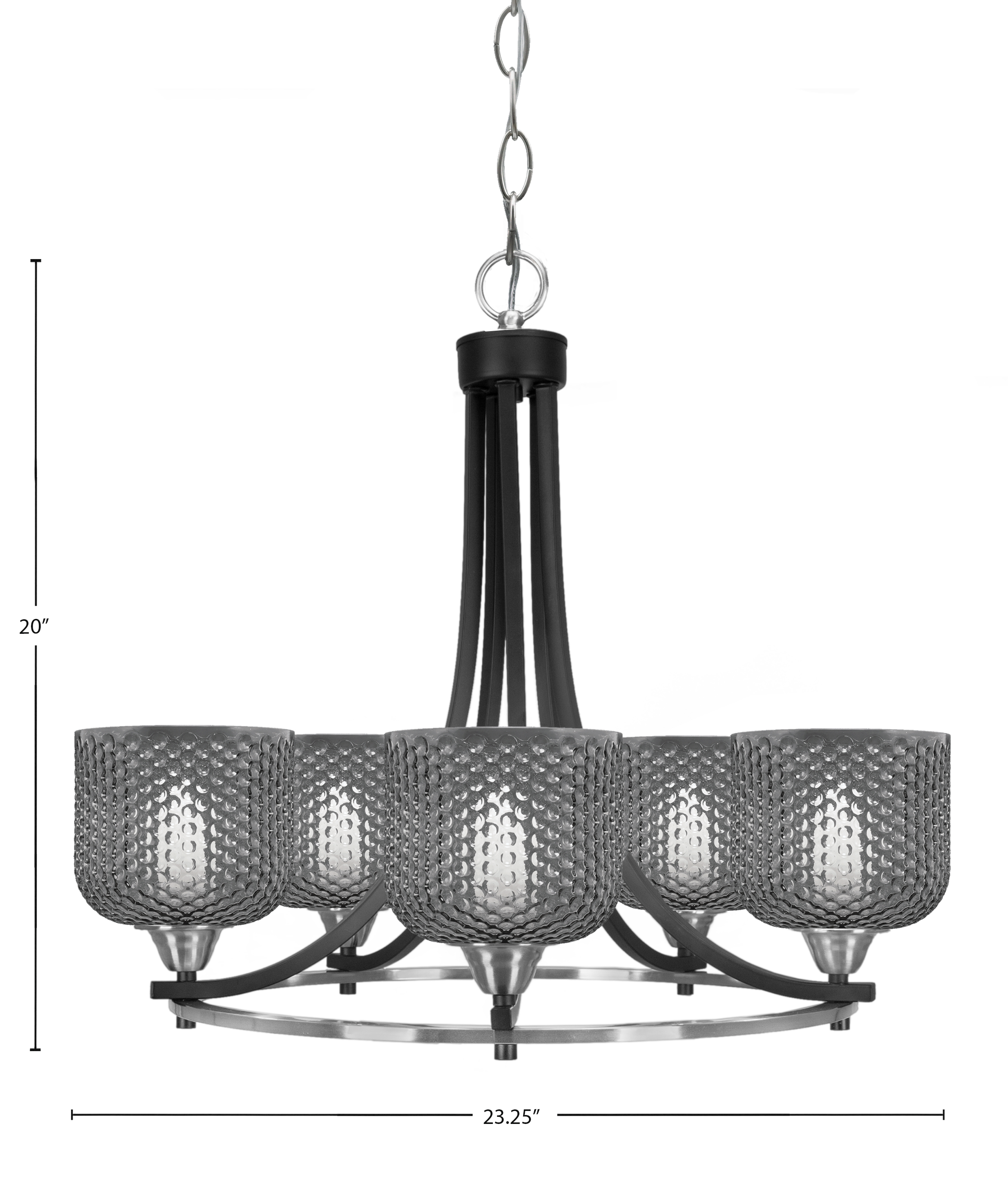 Toltec Lighting 3405-MBBN-4612 Paramount 5 Light Uplight Chandelier, Matte Black & Brushed Nickel Finish, 6″ Smoke Textured Glass
