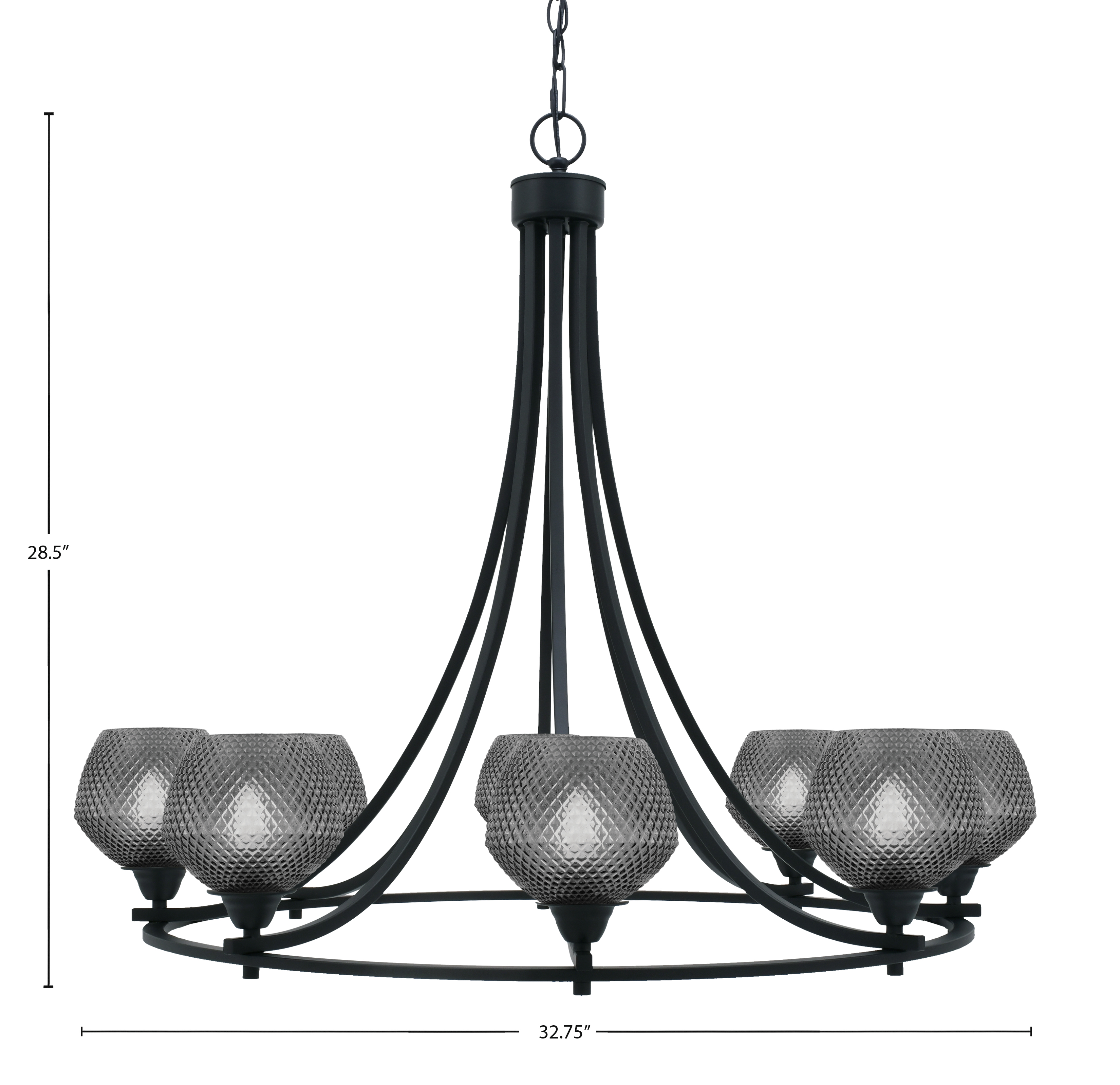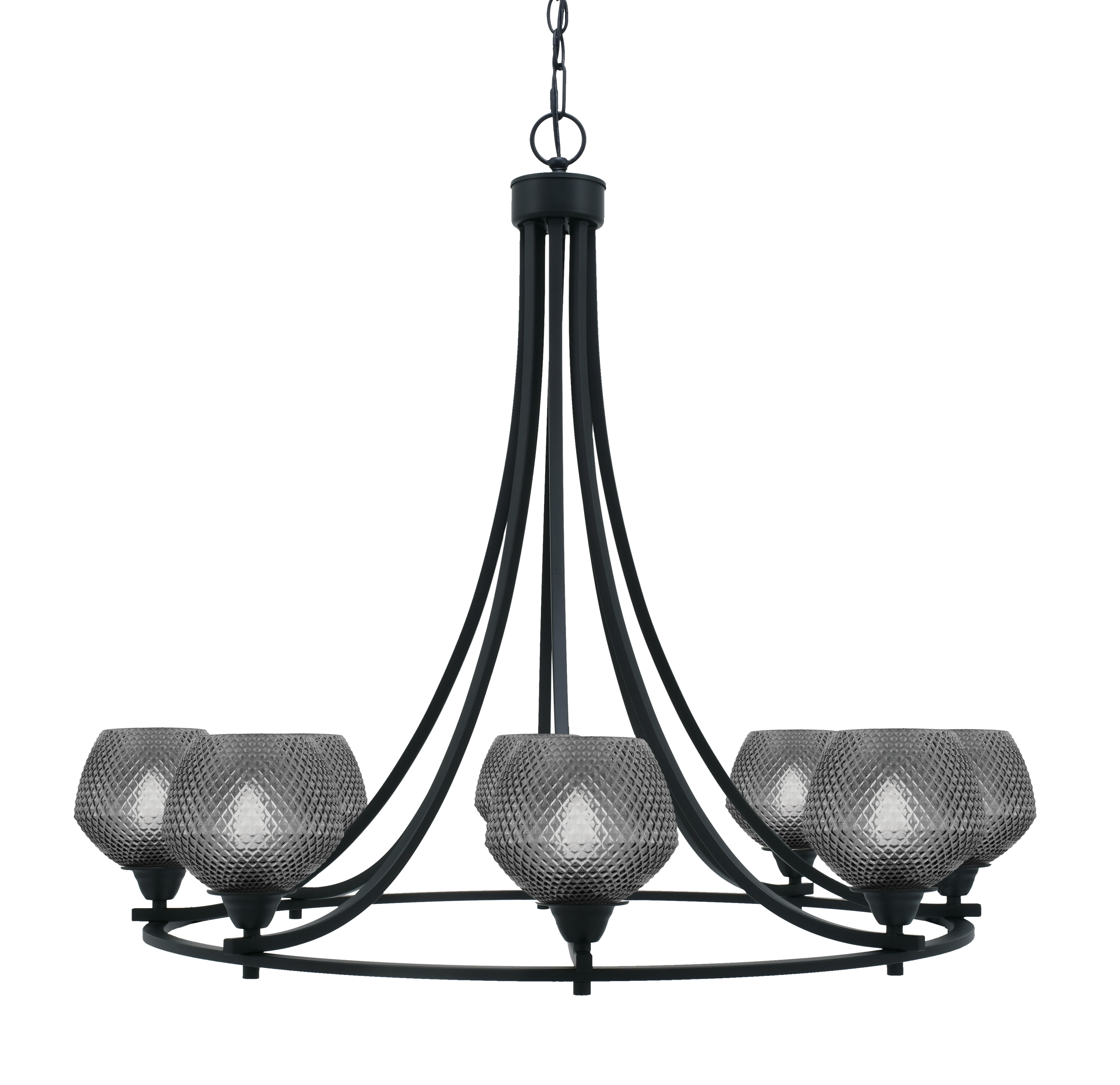 Striking and sophisticated, the Paramount 8 Light Uplight Chandelier makes a bold statement with its matte black finish and smoky textured glass shades. The 6″ smoke glass diffuses light upward, casting a soft, atmospheric glow, while the sweeping arms add graceful movement to the design. Perfect for modern interiors, this chandelier brings depth, drama, and refined style.