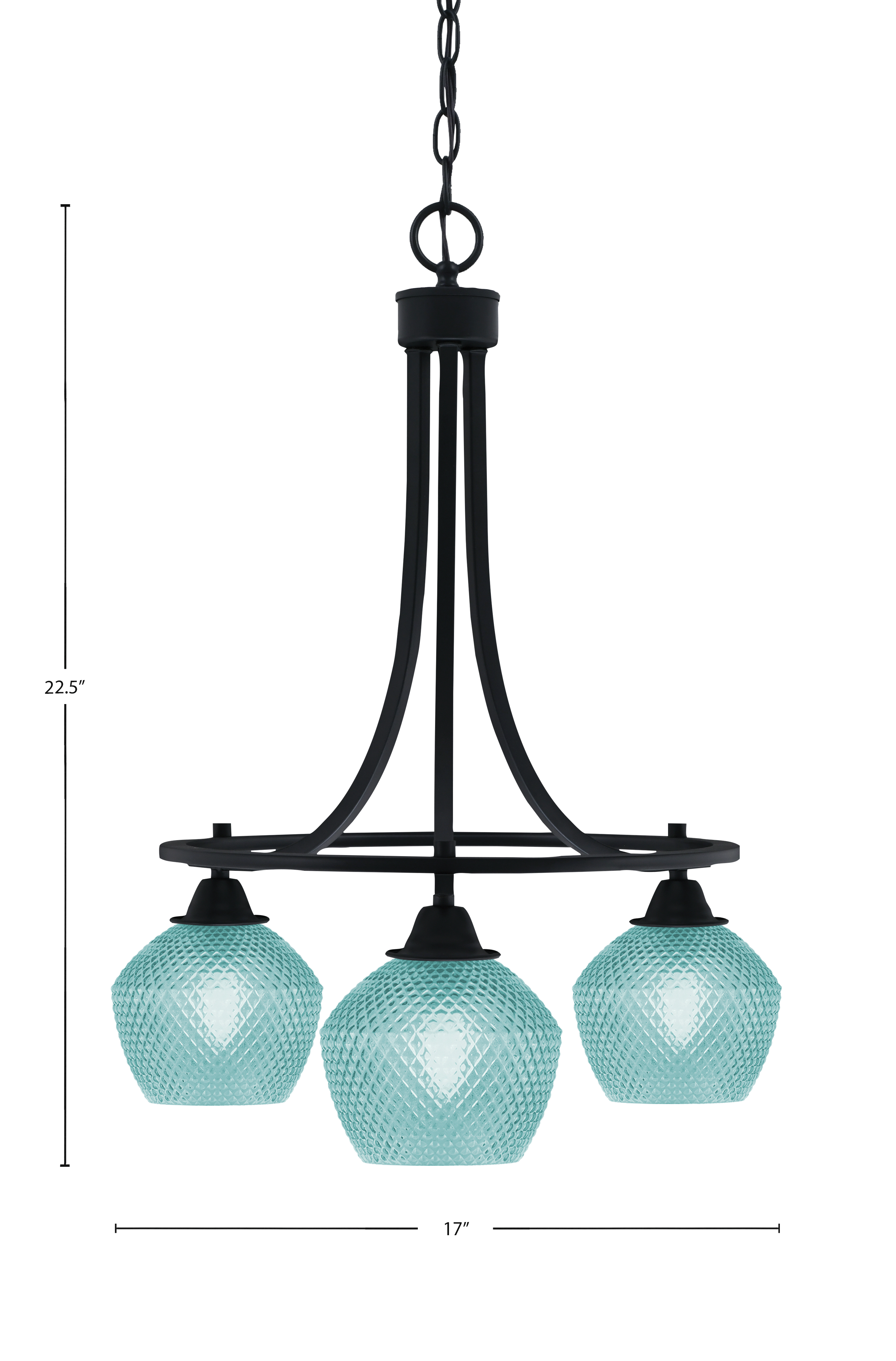 Toltec Lighting 3413-MB-4625 Paramount 3 Light Downlight Chandelier Shown In Matte Black Finish With 6″ Turquoise Textured Glass