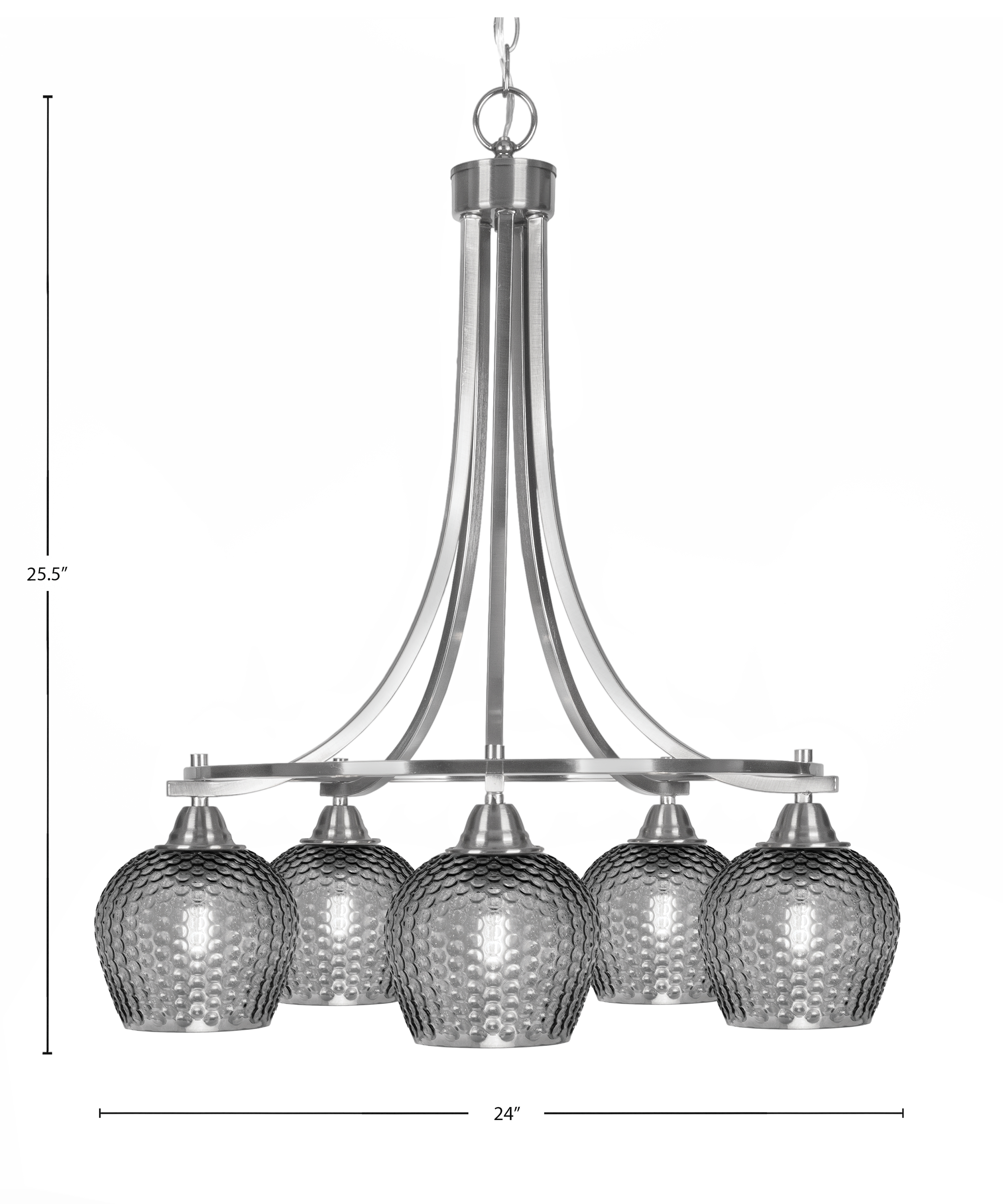 Toltec Lighting 3415-BN-4602 Paramount 5 Light Downlight Chandelier, Brushed Nickel Finish, 6″ Smoke Textured Glass