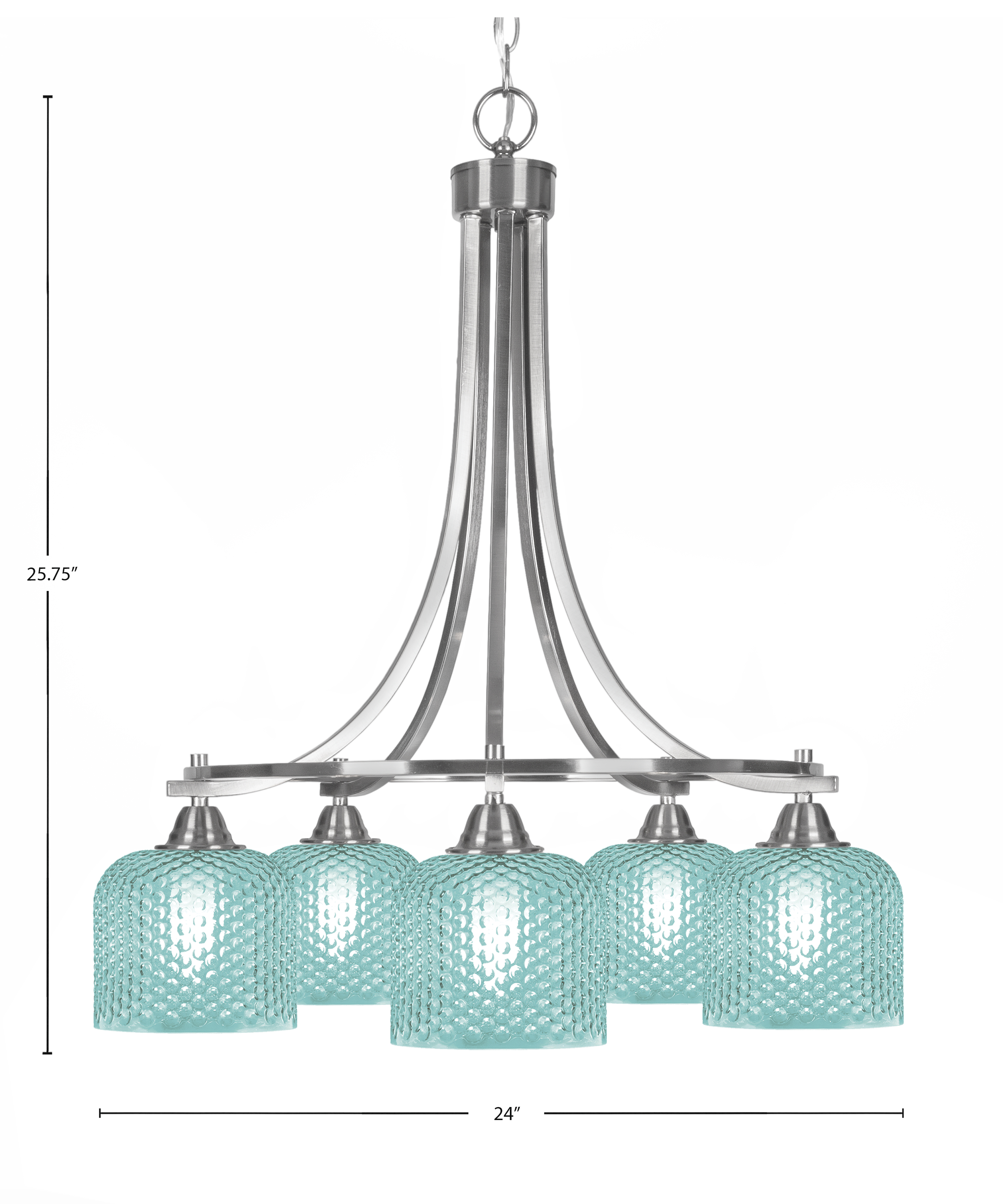 Toltec Lighting 3415-BN-4615 Paramount 5 Light Downlight Chandelier, Brushed Nickel Finish, 6″ Turquoise Textured Glass