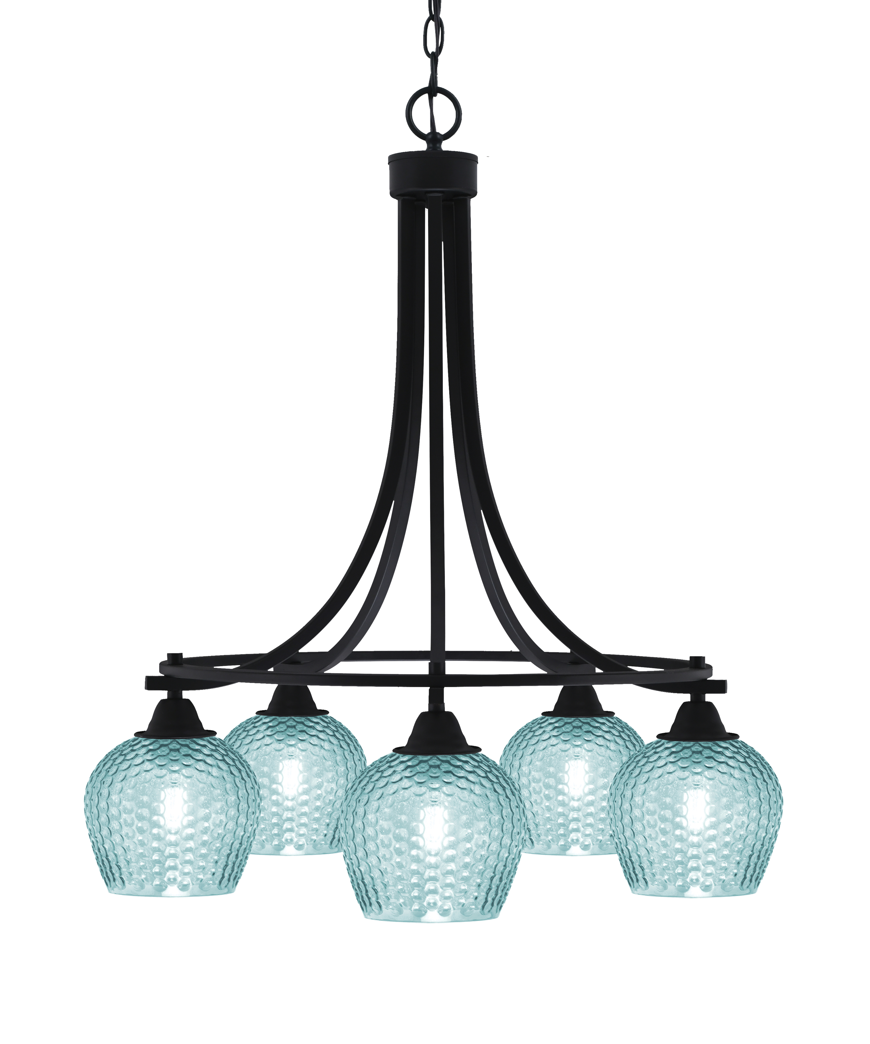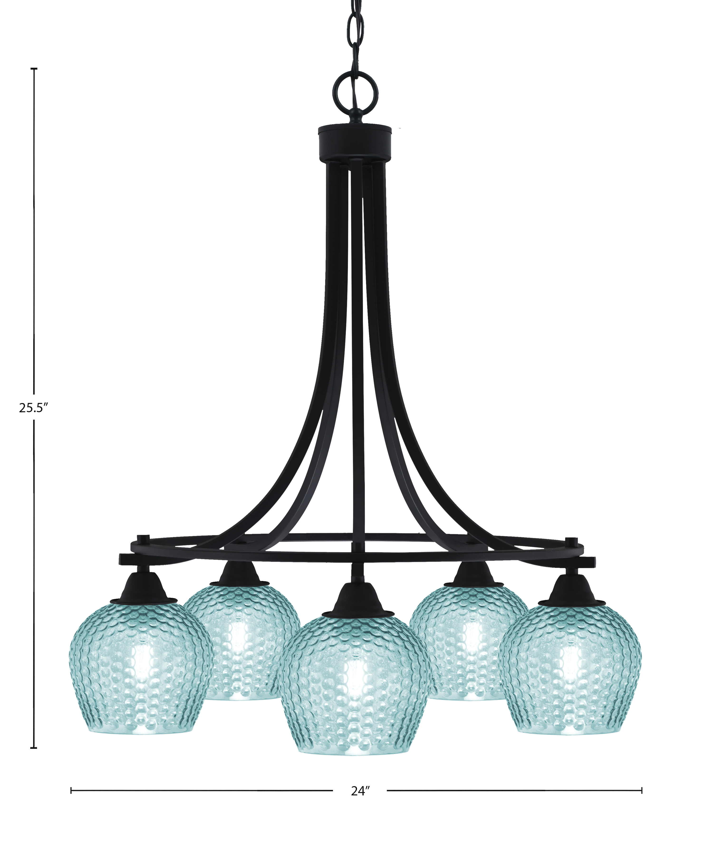Toltec Lighting 3415-MB-4605 Paramount 5 Light Downlight Chandelier, Matte Black Finish, 6″ Turquoise Textured Glass