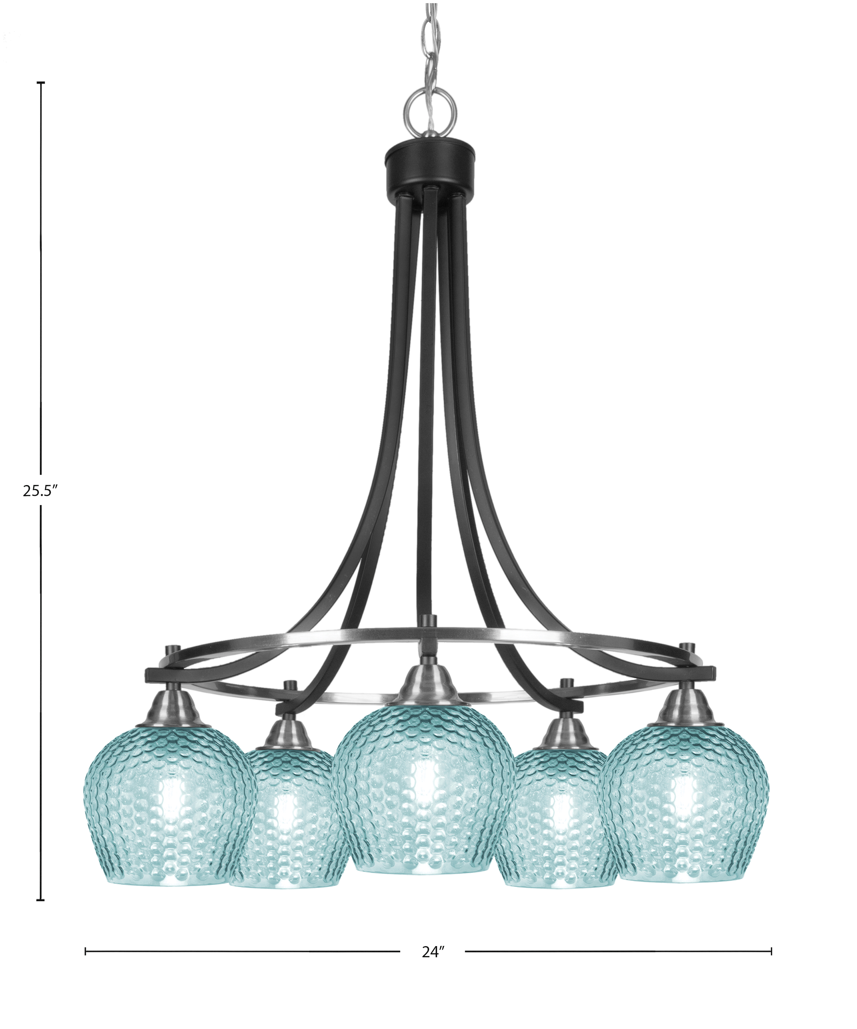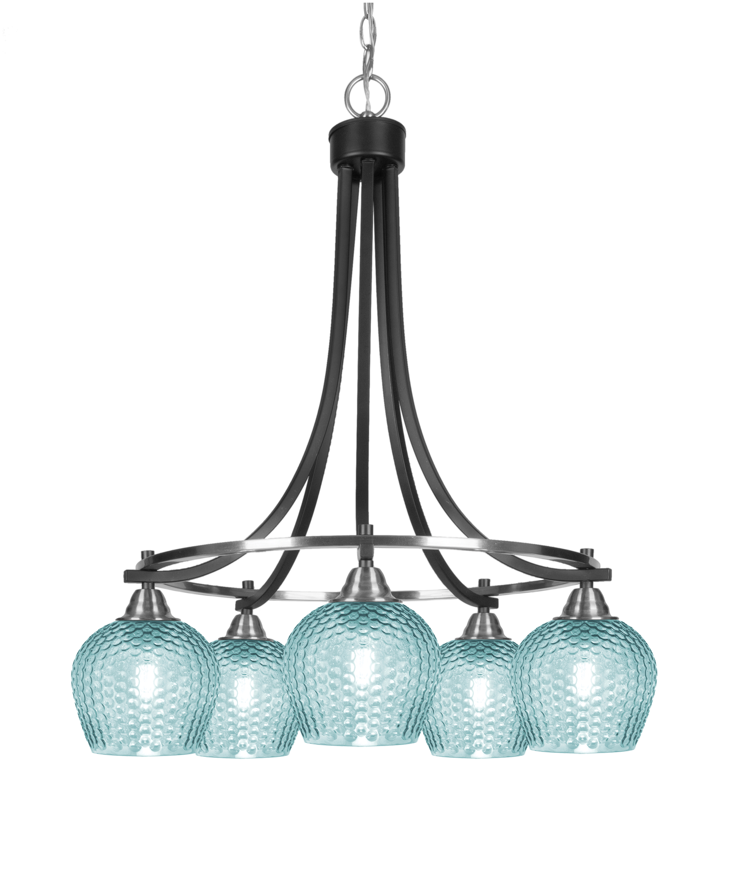 Toltec Lighting 3415-MBBN-4605 Paramount 5 Light Downlight Chandelier, Matte Black & Brushed Nickel Finish, 6″ Turquoise Textured Glass