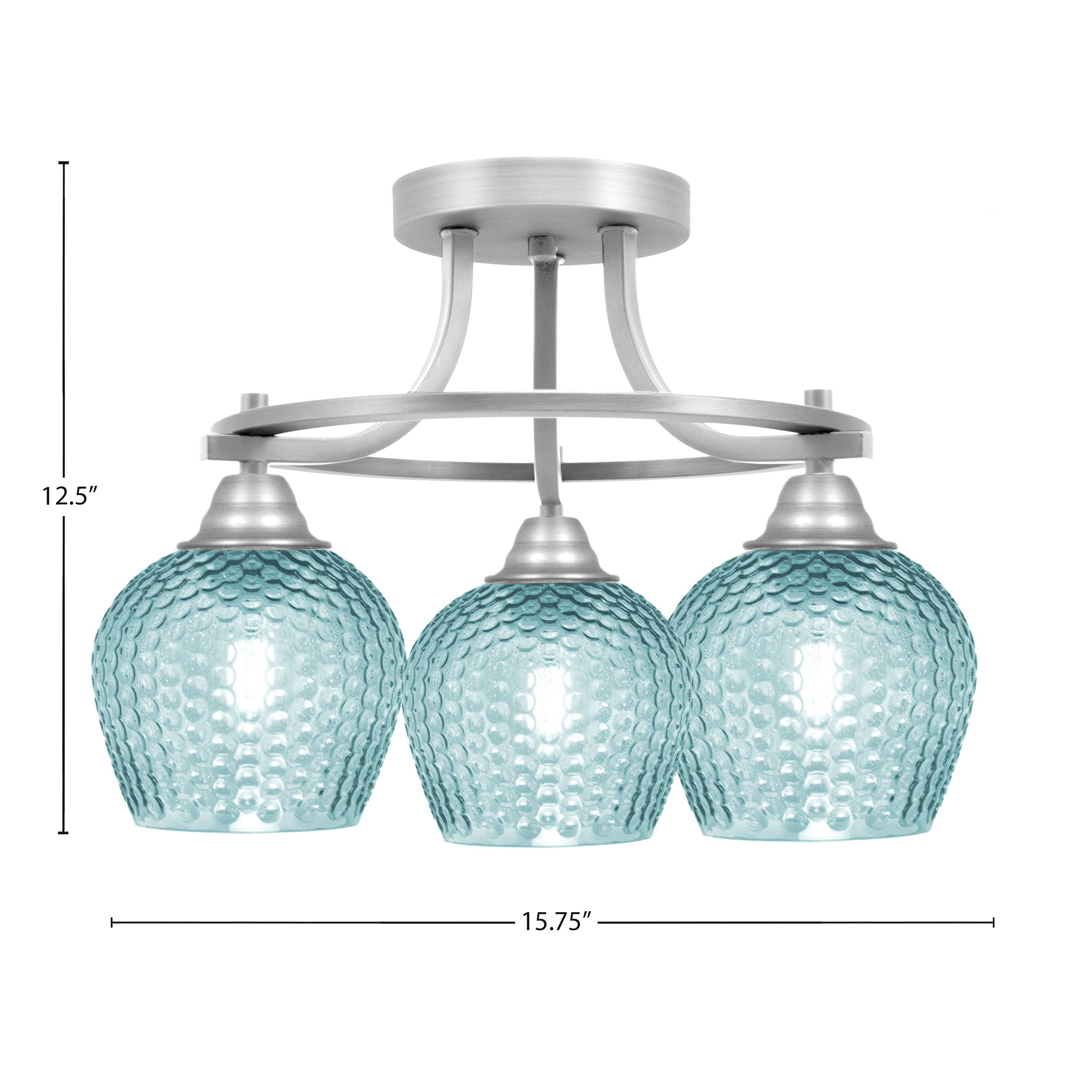 Toltec Lighting 3417-BN-4605 Paramount 3 Light Semi Flush, Brushed Nickel Finish, 6″ Turquoise Textured Glass