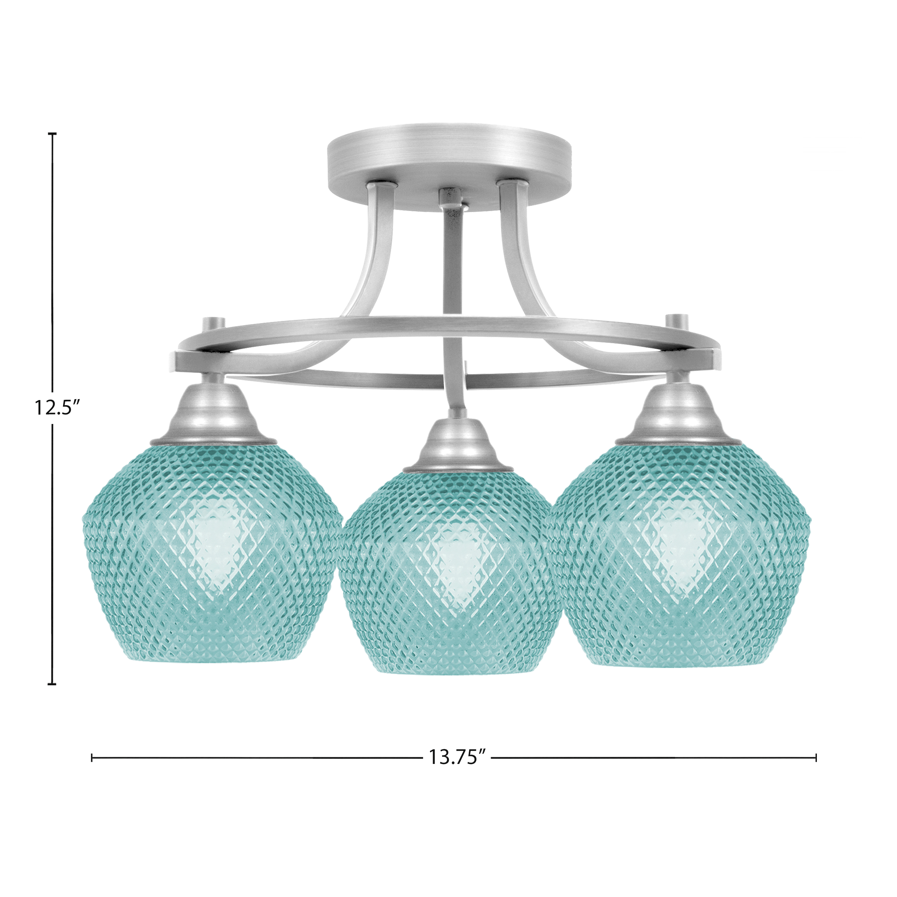 Toltec Lighting 3417-BN-4625 Paramount 3 Light Semi Flush, Brushed Nickel Finish, 6″ Turquoise Textured Glass
