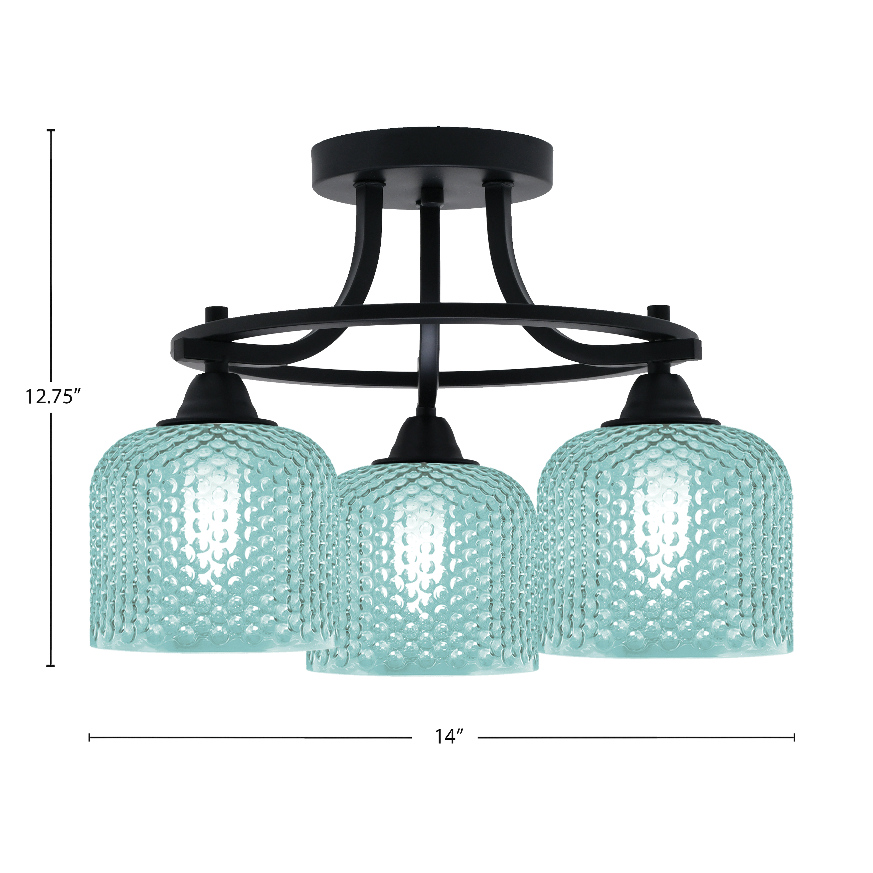 Toltec Lighting 3417-MB-4615 Paramount 3 Light Semi Flush, Matte Black Finish, 6″ Turquoise Textured Glass