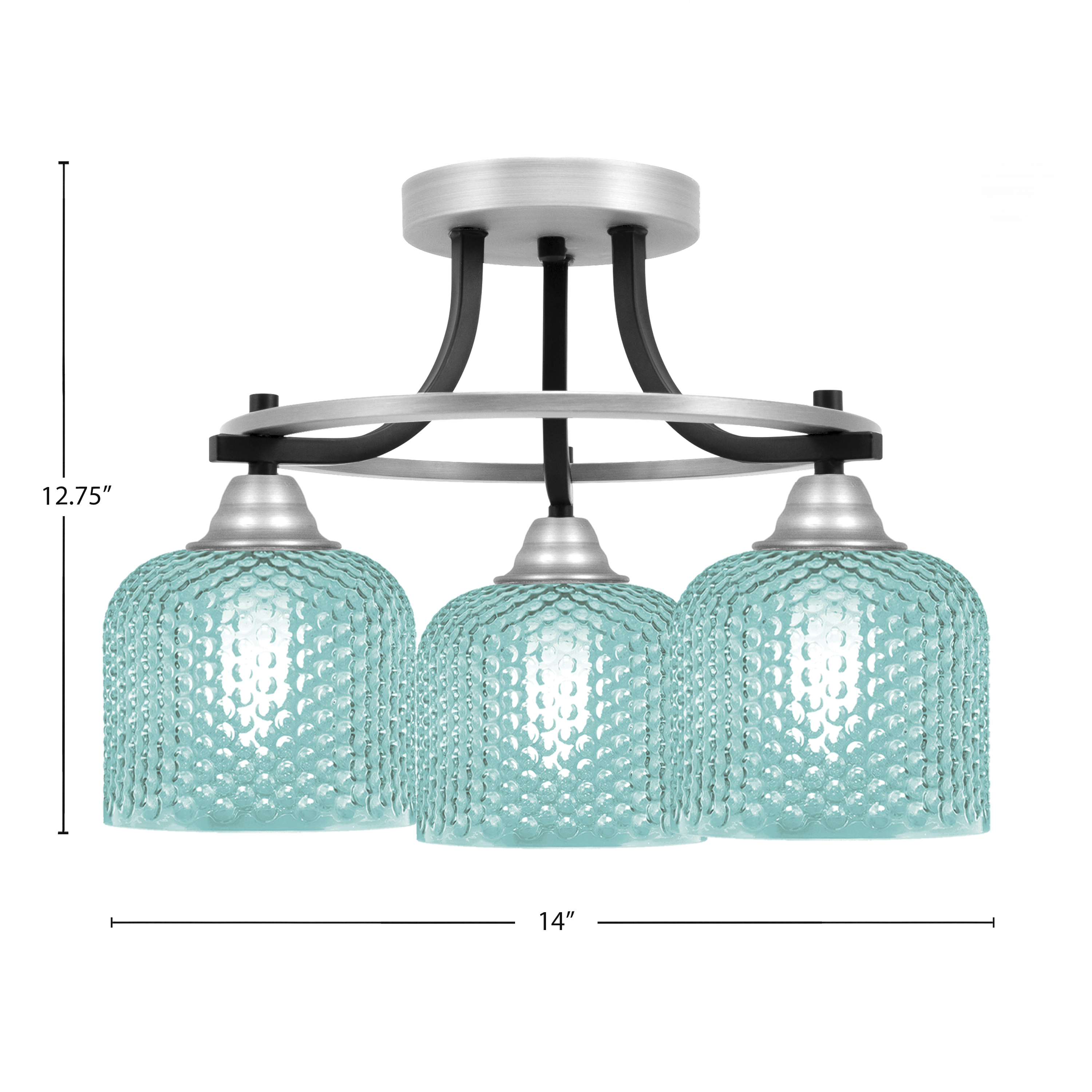 Toltec Lighting 3417-MBBN-4615 Paramount 3 Light Semi Flush, Matte Black & Brushed Nickel Finish, 6″ Turquoise Textured Glass