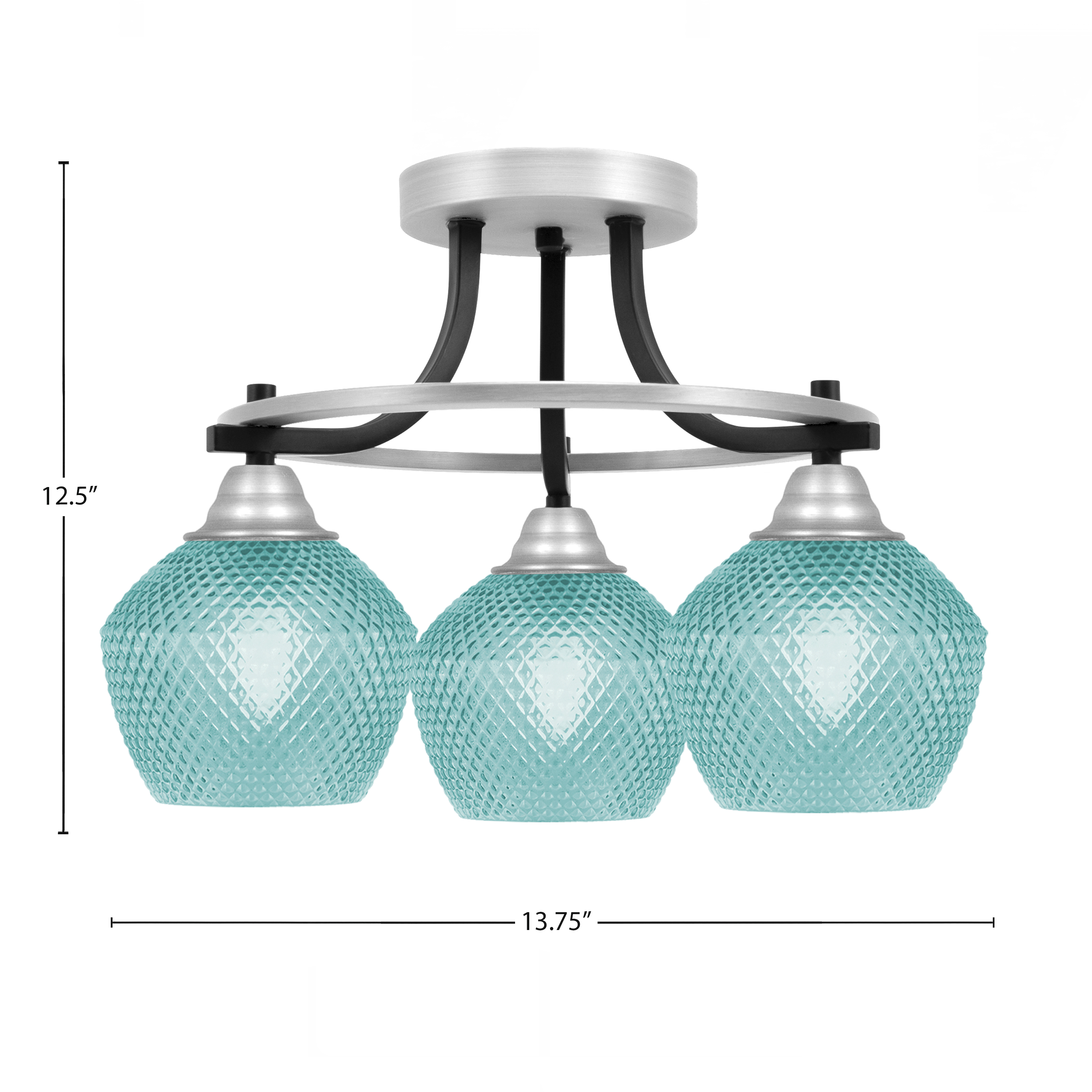 Toltec Lighting 3417-MBBN-4625 Paramount 3 Light Semi Flush, Matte Black & Brushed Nickel Finish, 6″ Turquoise Textured Glass