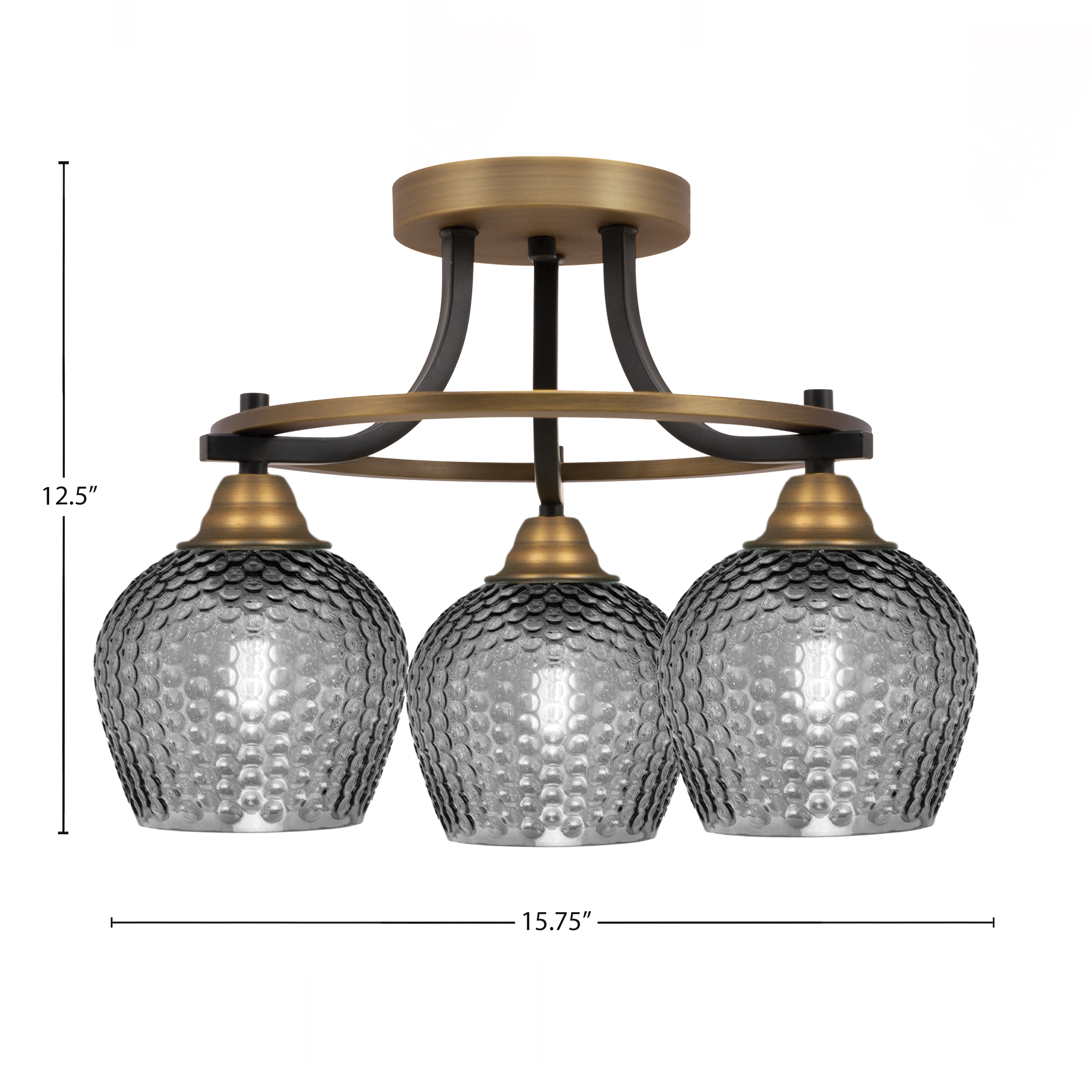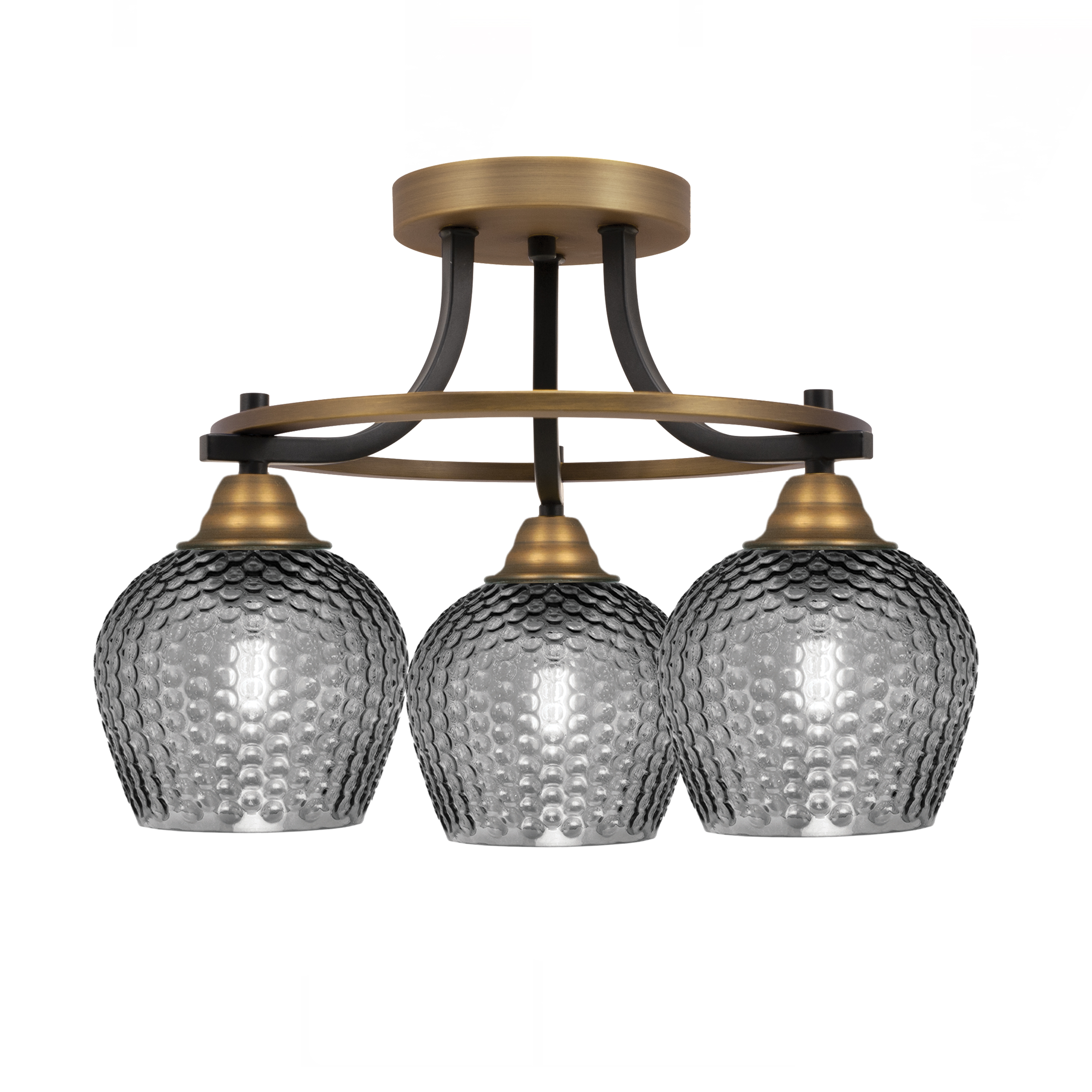 Toltec Lighting 3417-MBBR-4602 Paramount 3 Light Semi Flush, Matte Black & Brass Finish, 6″ Smoke Textured Glass