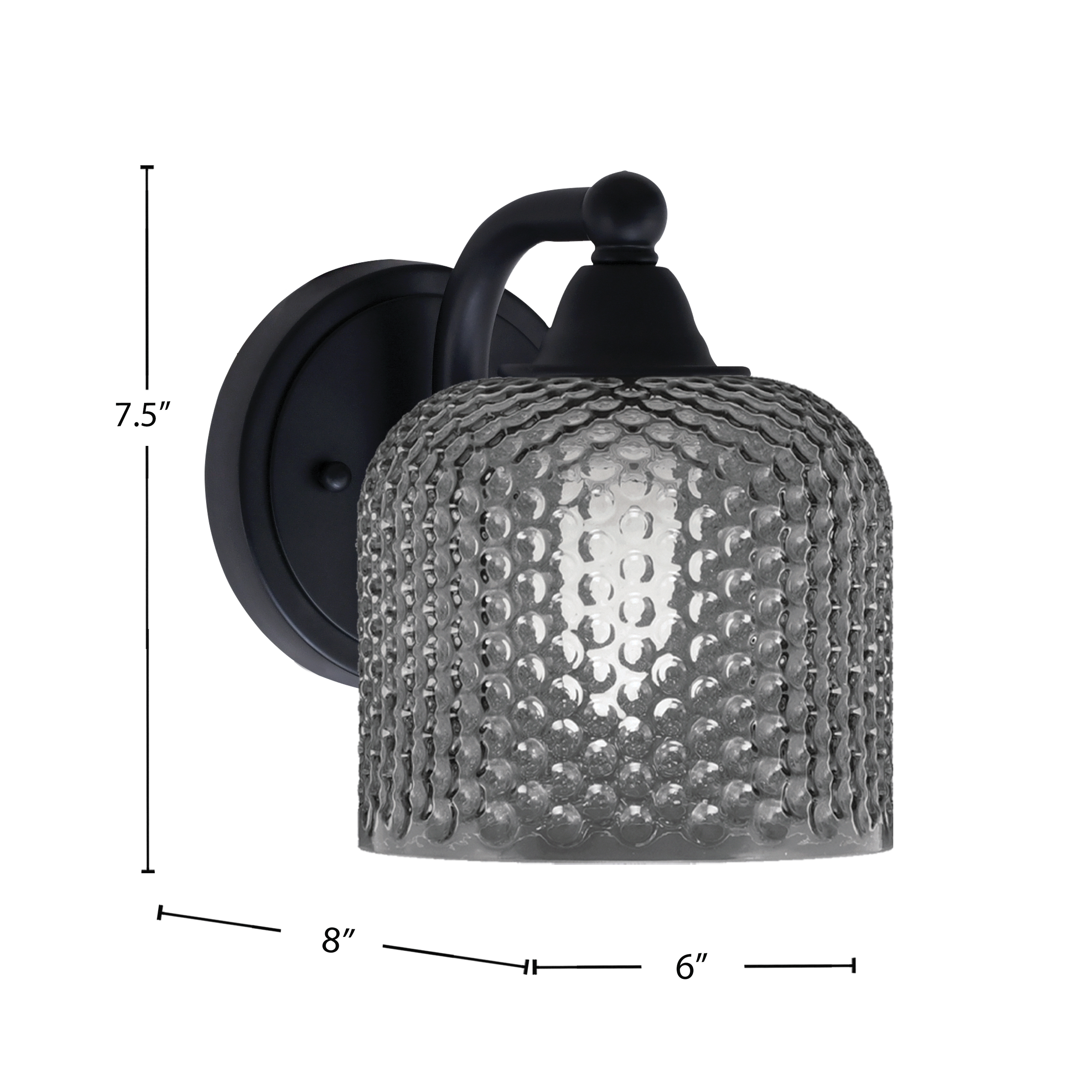 Toltec Lighting 3421-MB-4612 Paramount 1 Light Wall Sconce, Matte Black Finish, 6″ Smoke Textured Glass