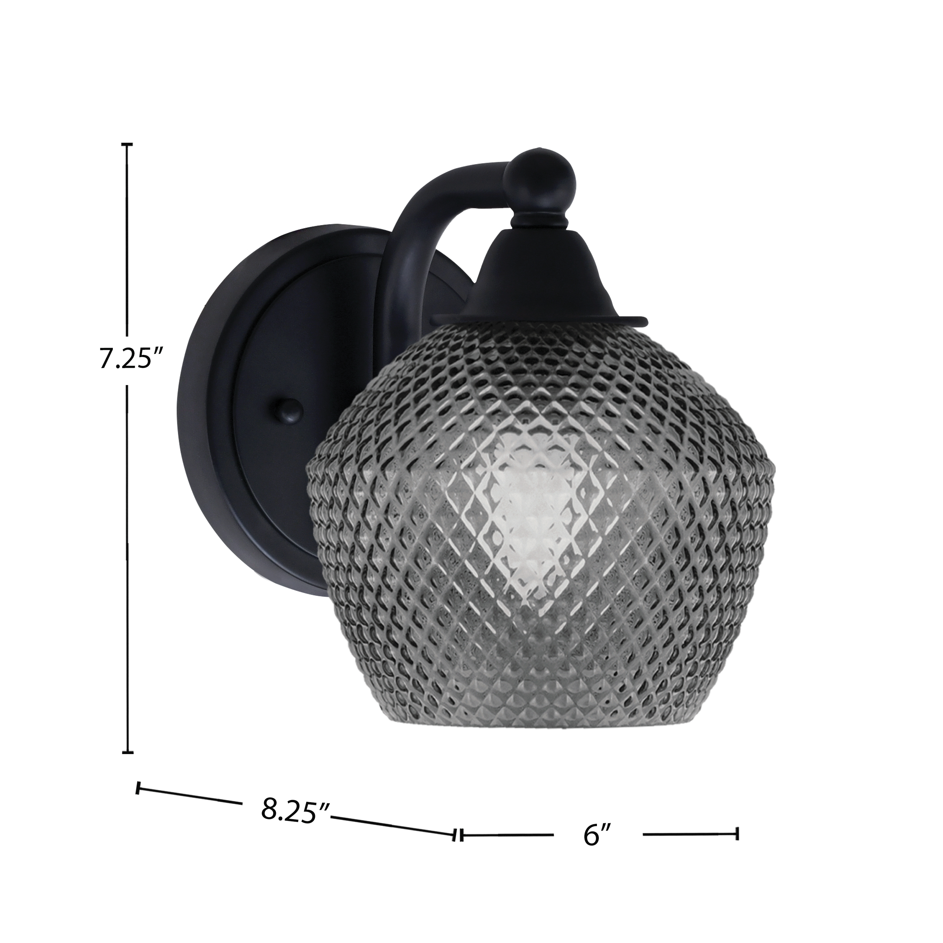 Toltec Lighting 3421-MB-4622 Paramount 1 Light Wall Sconce, Matte Black Finish, 6″ Smoke Textured Glass