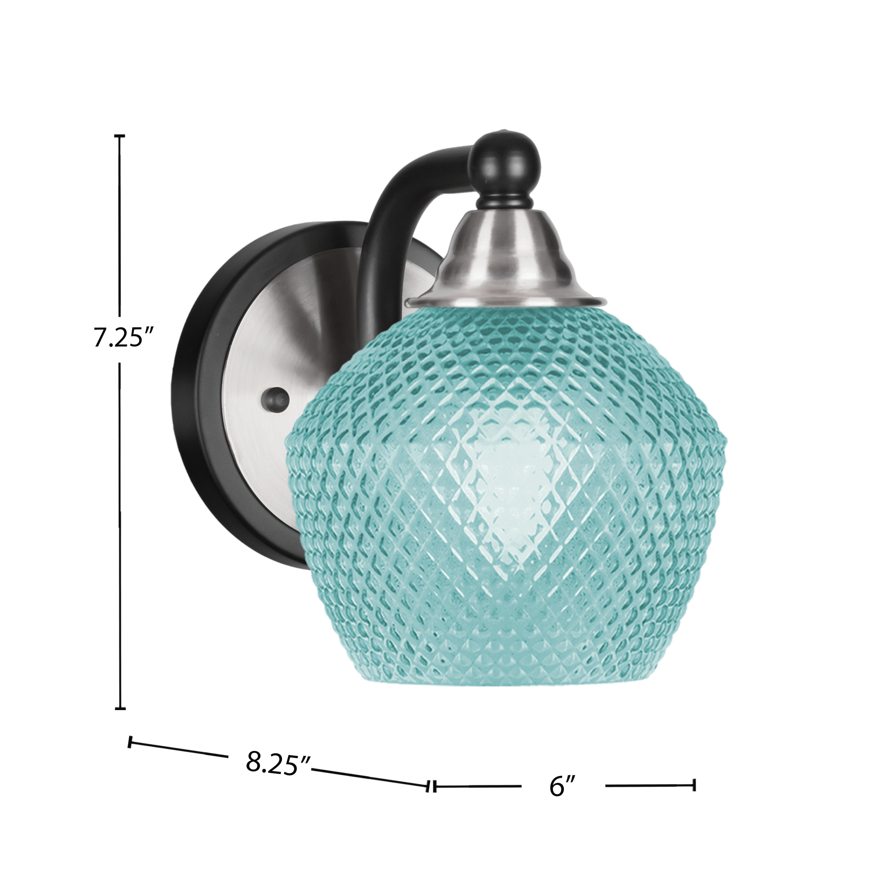 Toltec Lighting 3421-MBBN-4625 Paramount 1 Light Wall Sconce, Matte Black & Brushed Nickel Finish, 6″ Turquoise Textured Glass