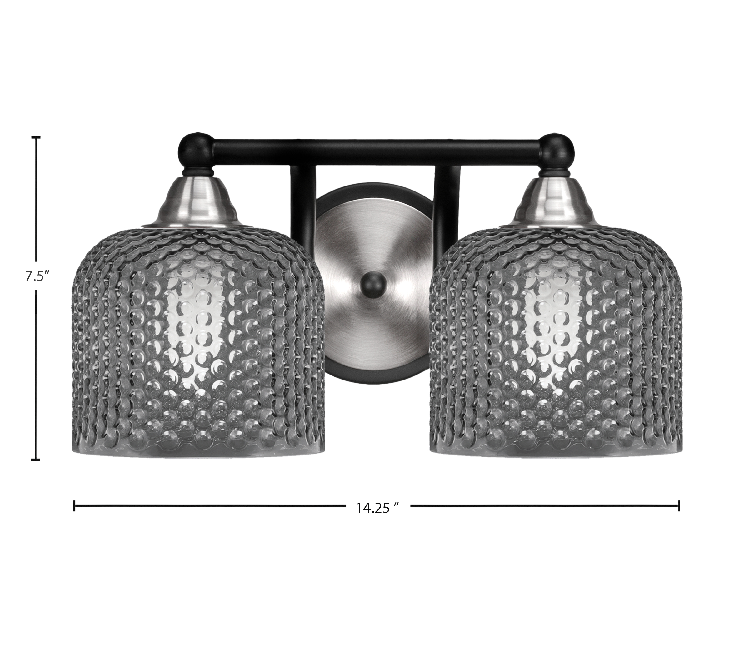 Toltec Lighting 3422-MBBN-4612 Paramount 2 Light Bath Bar, Matte Black & Brushed Nickel Finish, 6″ Smoke Textured Glass