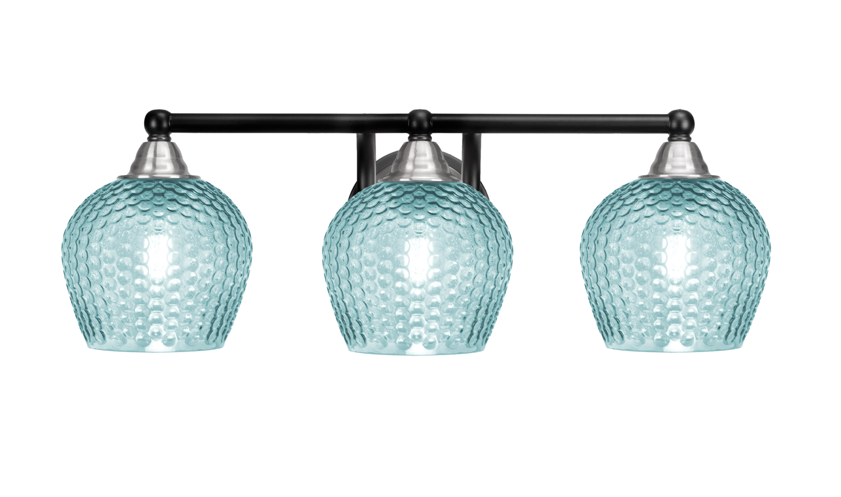 Toltec Lighting 3423-MBBN-4605 Paramount 3 Light Bath Bar, Matte Black & Brushed Nickel Finish, 6″ Turquoise Textured Glass