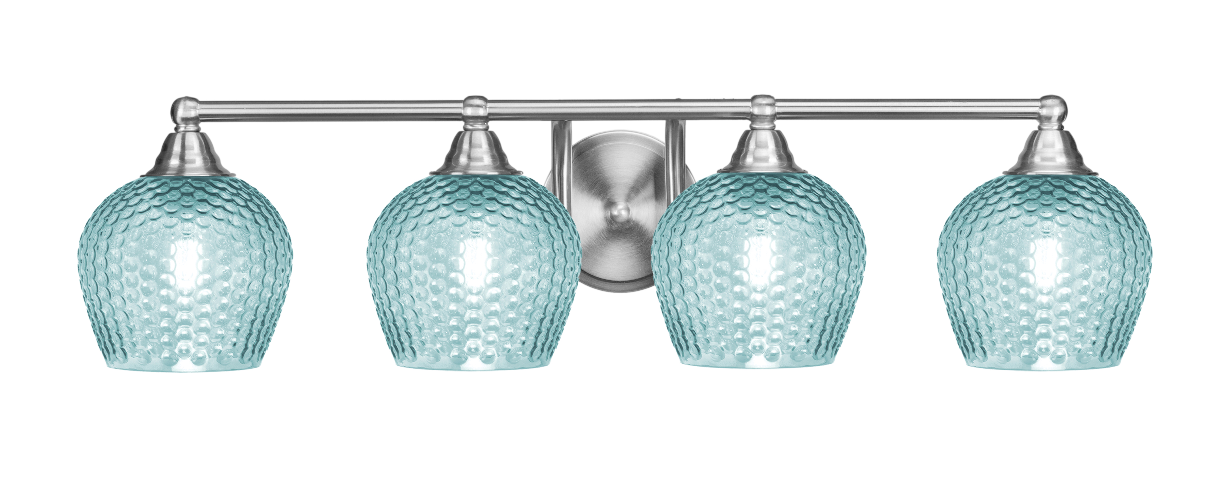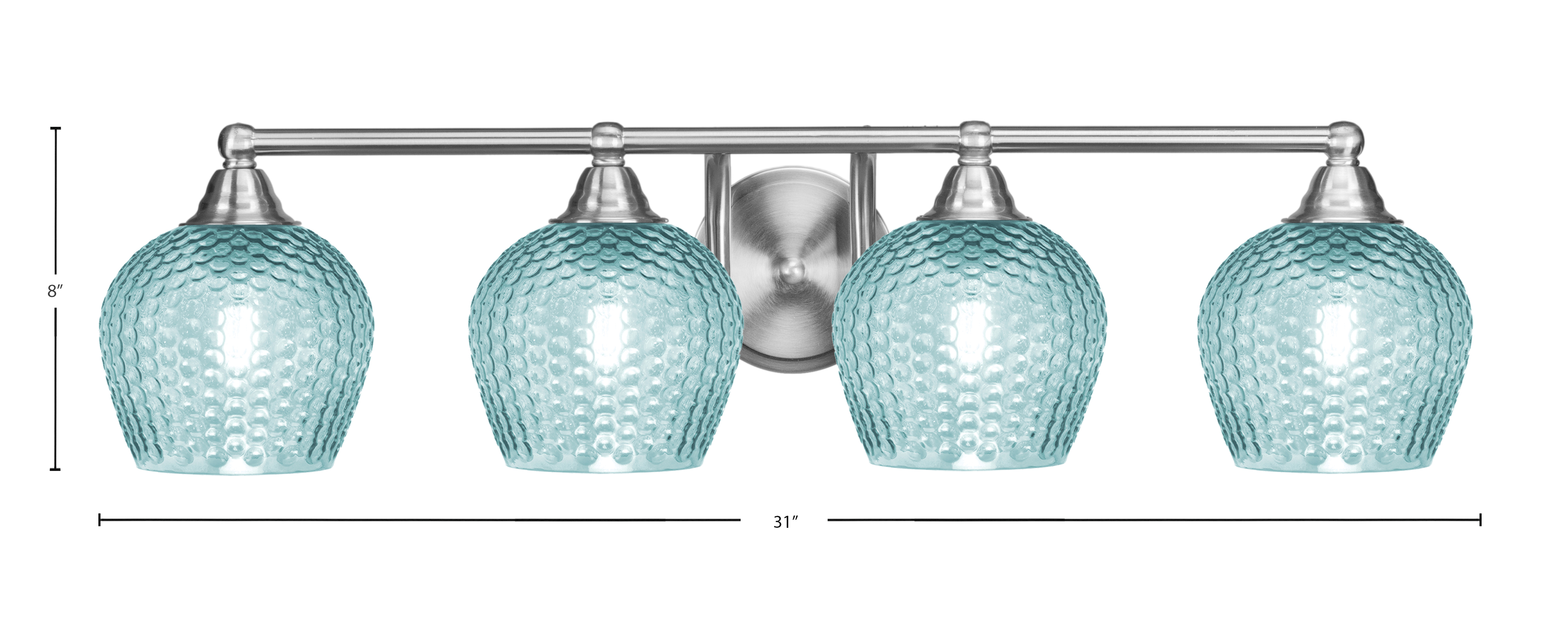 Toltec Lighting 3424-BN-4605 Paramount 4 Light Bath Bar, Brushed Nickel Finish, 6″ Turquoise Textured Glass