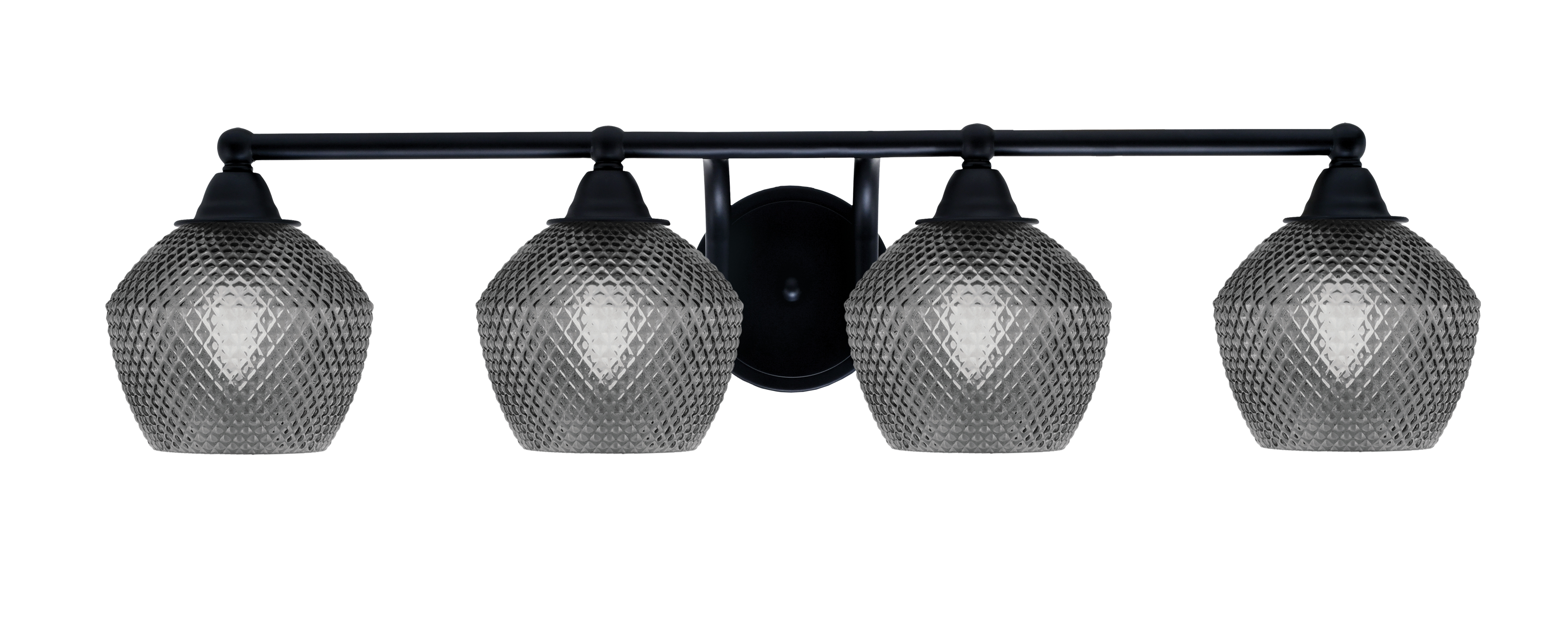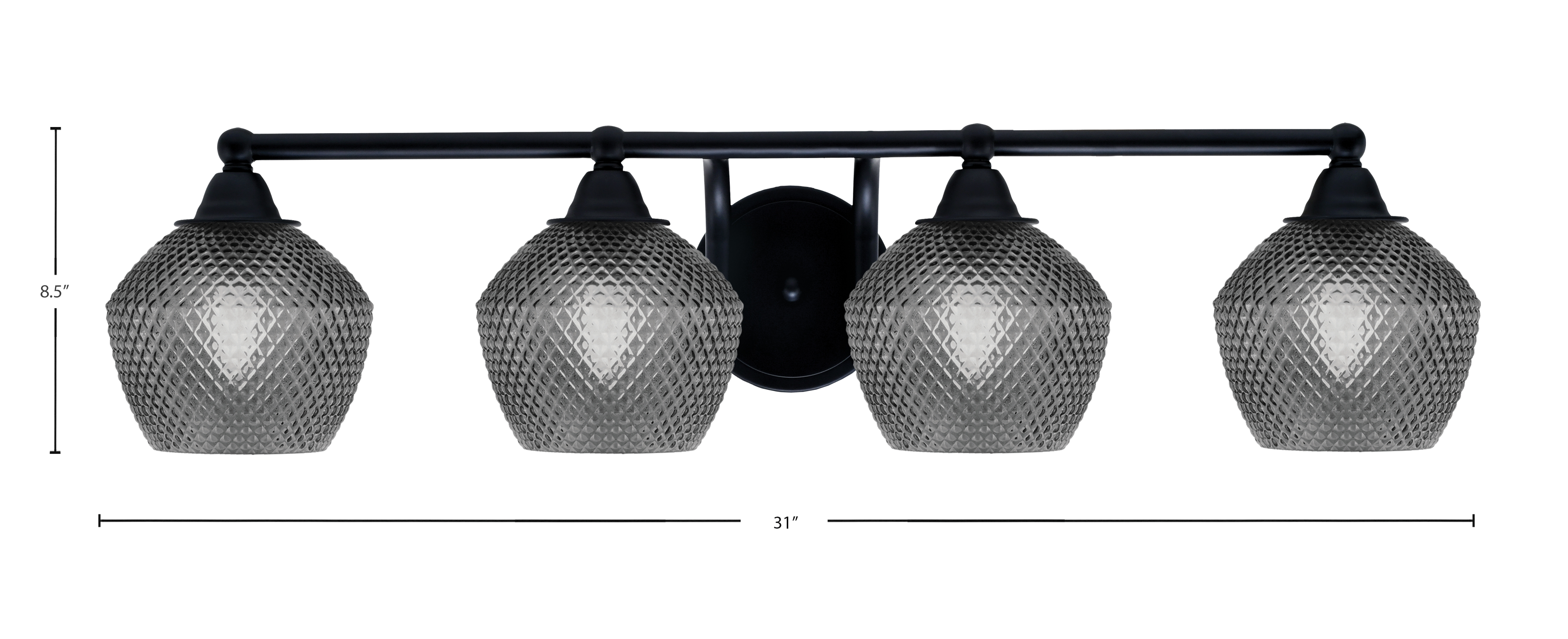 Toltec Lighting 3424-MB-4622 Paramount 4 Light Bath Bar, Matte Black Finish, 6″ Smoke Textured Glass