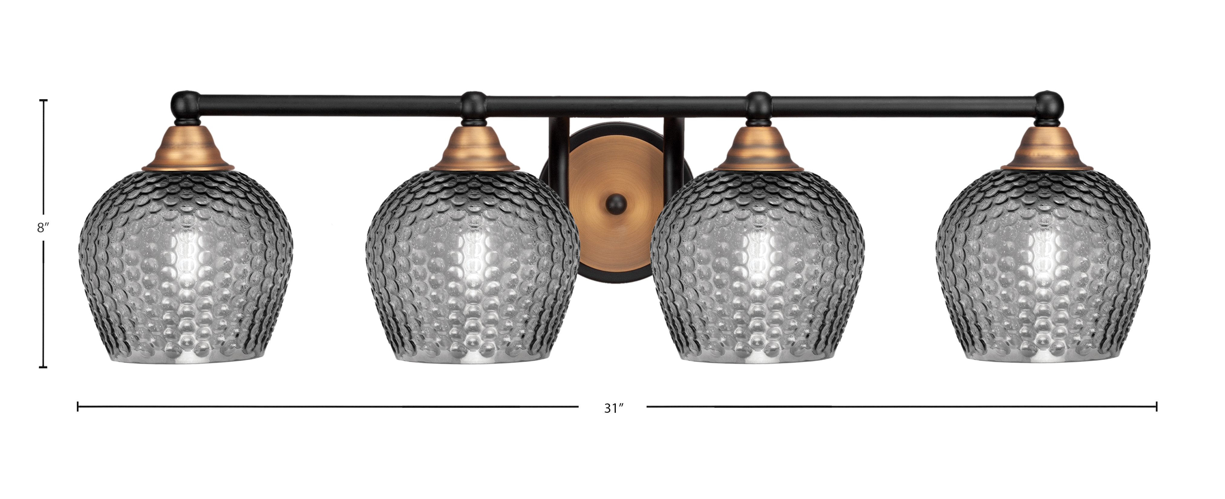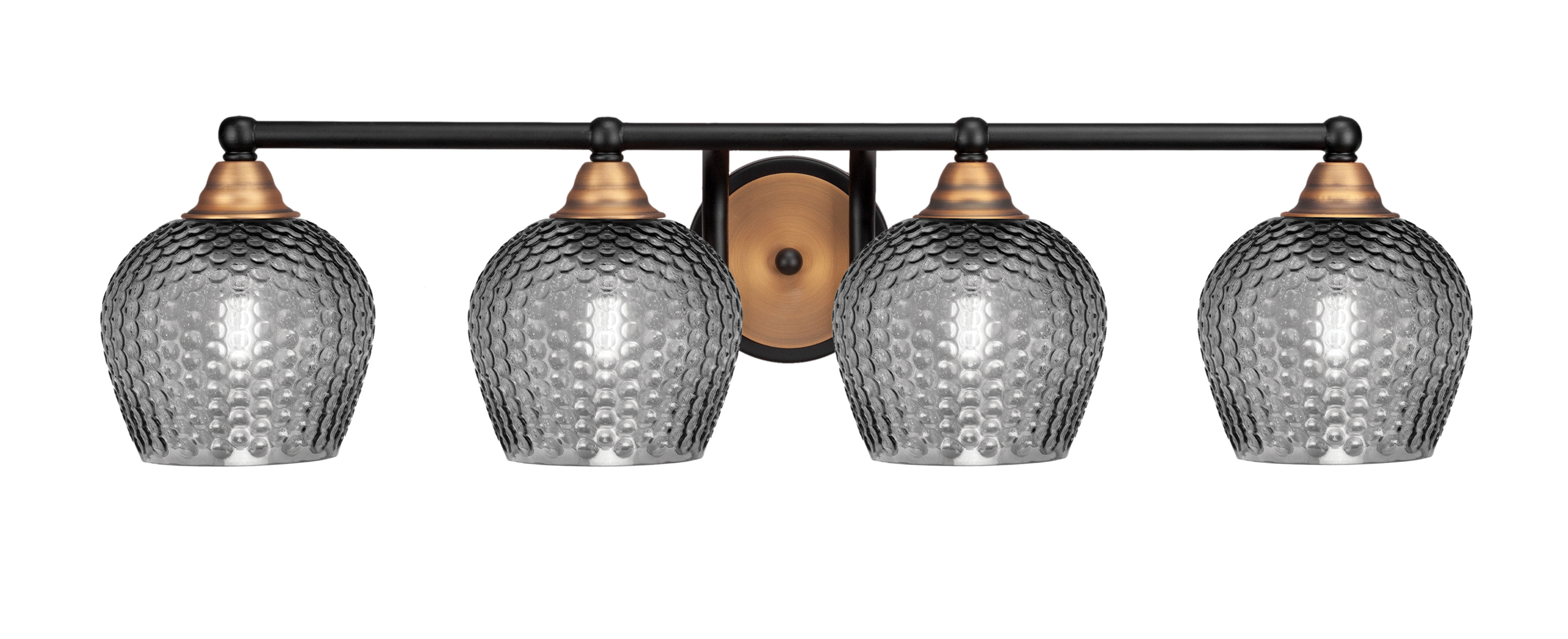 Toltec Lighting 3424-MBBR-4602 Paramount 4 Light Bath Bar, Matte Black & Brass Finish, 6″ Smoke Textured Glass
