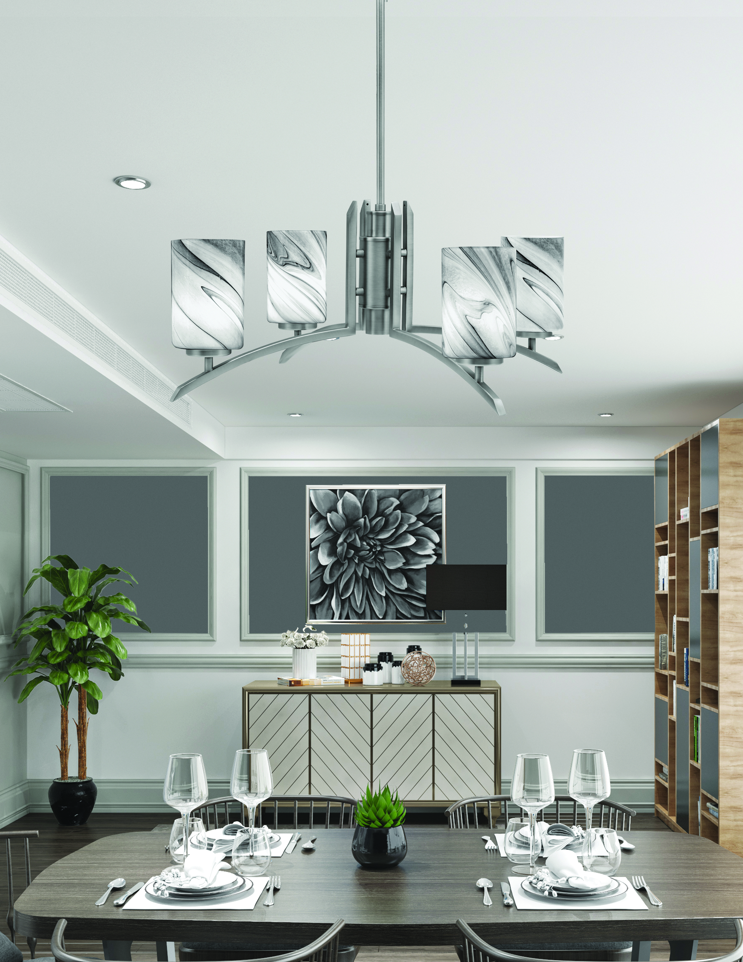 Toltec Lighting 3704-GP-3009 Kurve 4 Light Chandelier, Graphite Finish, 4″ Onyx Swirl Glass