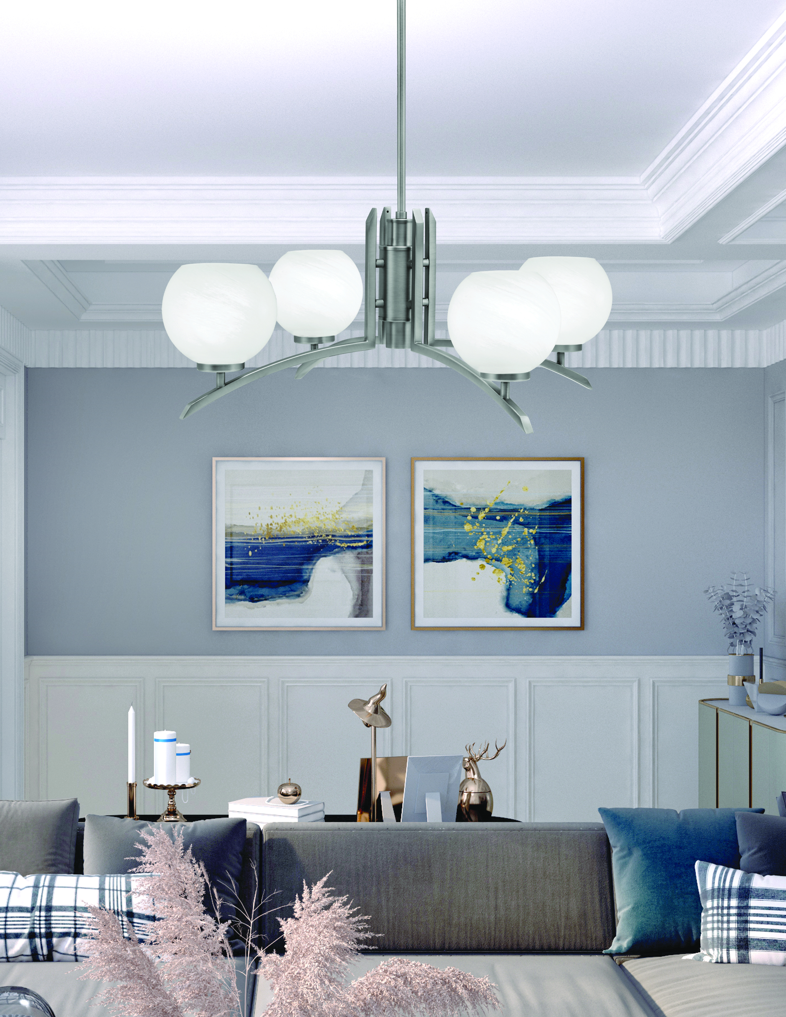 Elevate your home decor with The Kurve 4 Light Chandelier, featuring a sleek graphite finish and sophisticated 5.75-inch White Marble Glass shades. The White Marble Glass shades offer a refined, marble-like texture, diffusing light softly and evenly to create a warm, inviting ambiance. Transform your space with this elegant and versatile lighting fixture.