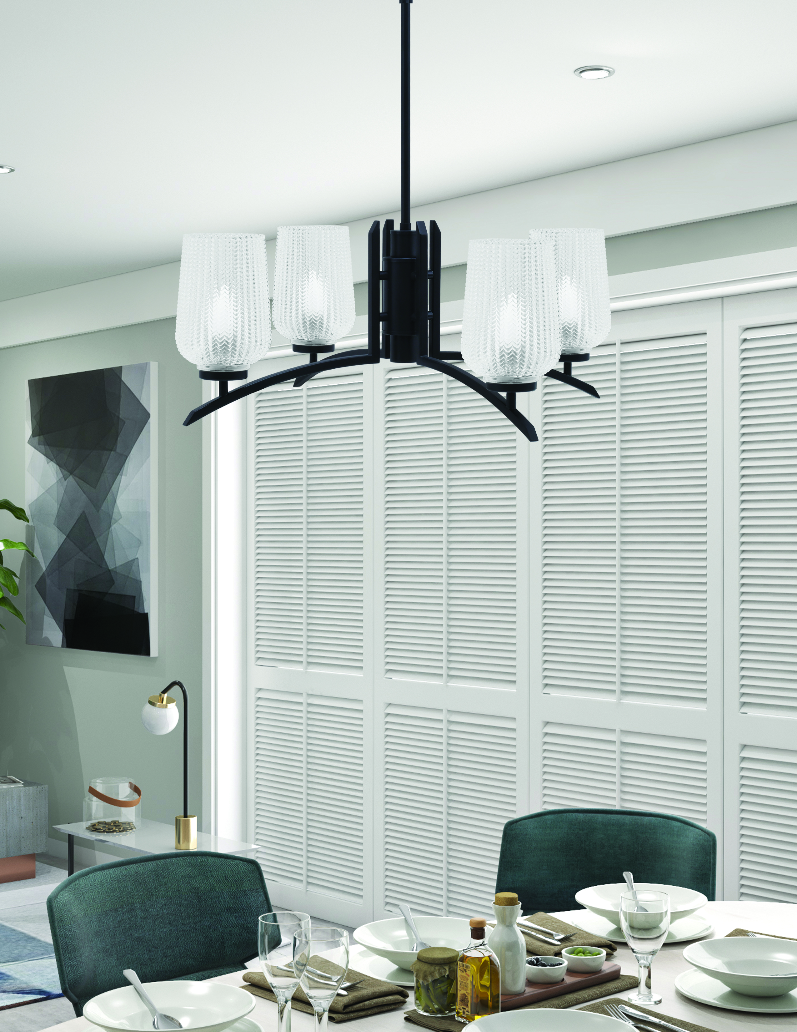 Illuminate Your Space With The Kurve 4 Light Chandelier, Showcasing A Stunning Matte Black Finish That Effortlessly Blends Modern Style With Classic Elegance. The Elegant Design Supports Four Brilliant Lights That Provide Warm, Inviting Illumination, Enhanced By 5″ Clear Textured Glass Shades That Diffuse The Light Beautifully. Perfect For Any Room, This Chandelier Elevates Your Decor While Offering A Unique Focal Point That Will Captivate All Who Enter.