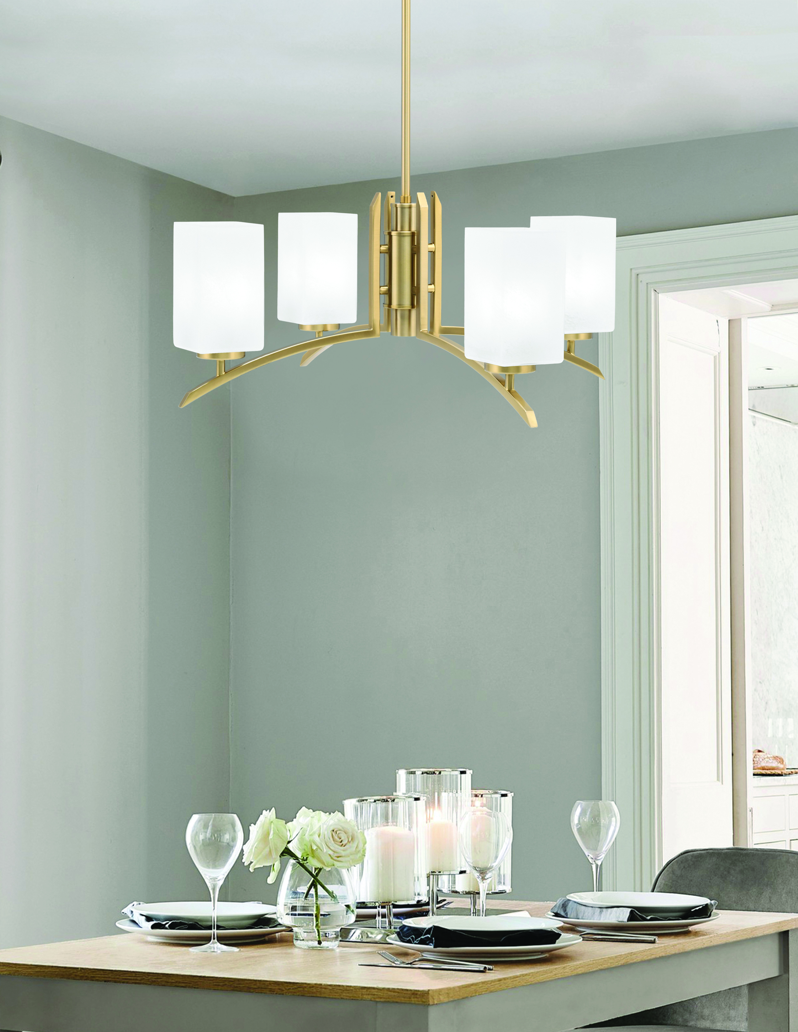 Elevate the elegance of your interior decor with The Kurve 4 Light Chandelier. This stunning chandelier showcases a sophisticated New Age Brass Finish that adds warmth and luxury to any room. The four lights are beautifully complemented by 3.5″ Square White Marble Glass shades, offering a refined and classic look with their smooth, marbled texture.