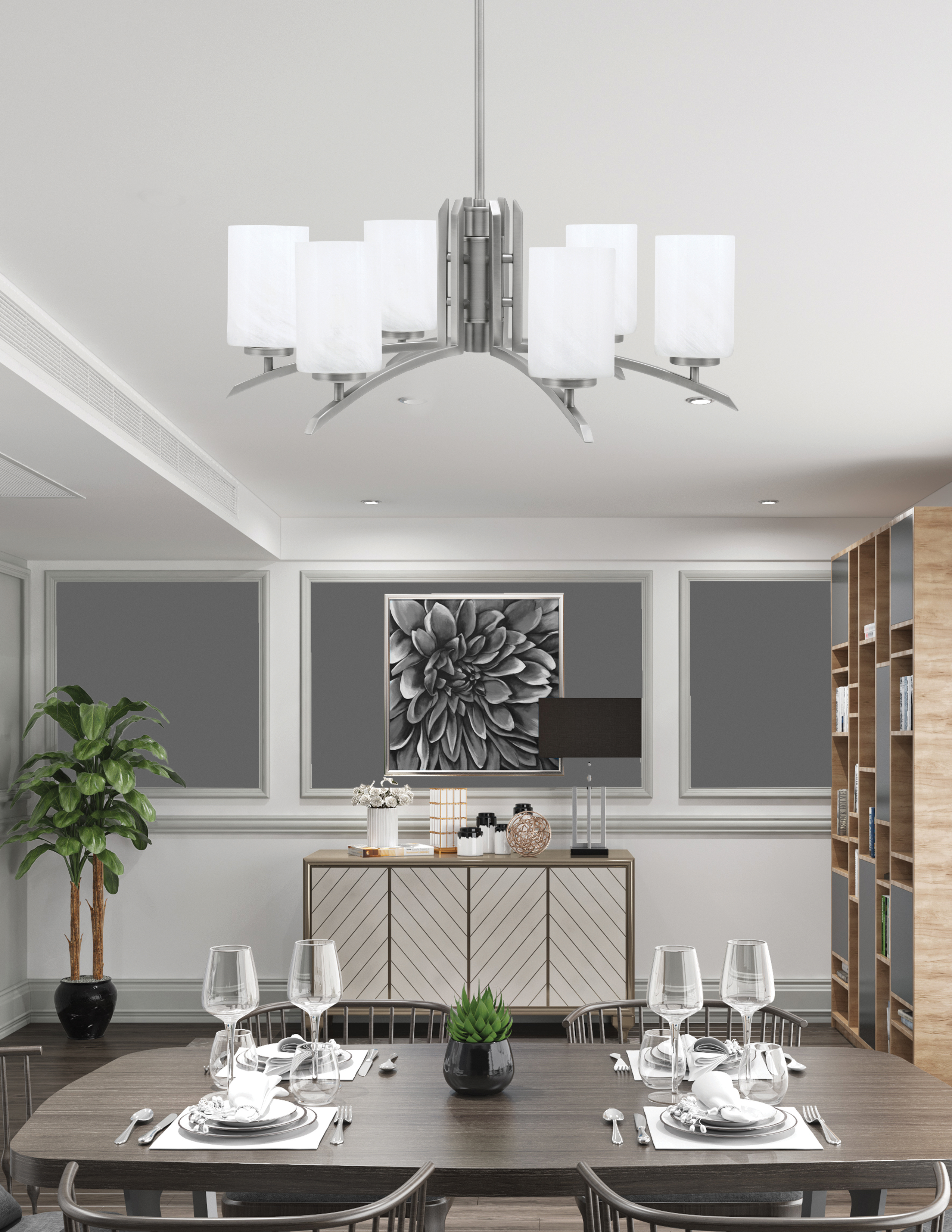 Introduce Elegance To Your Living Space With The Kurve 6 Light Chandelier. Featuring A Stunning Graphite Finish, This Chandelier Exudes Modern Sophistication And Style. The Four Beautiful White Marble Glass Shades Create A Soft, Inviting Glow That Enhances Any Room”s Ambiance.