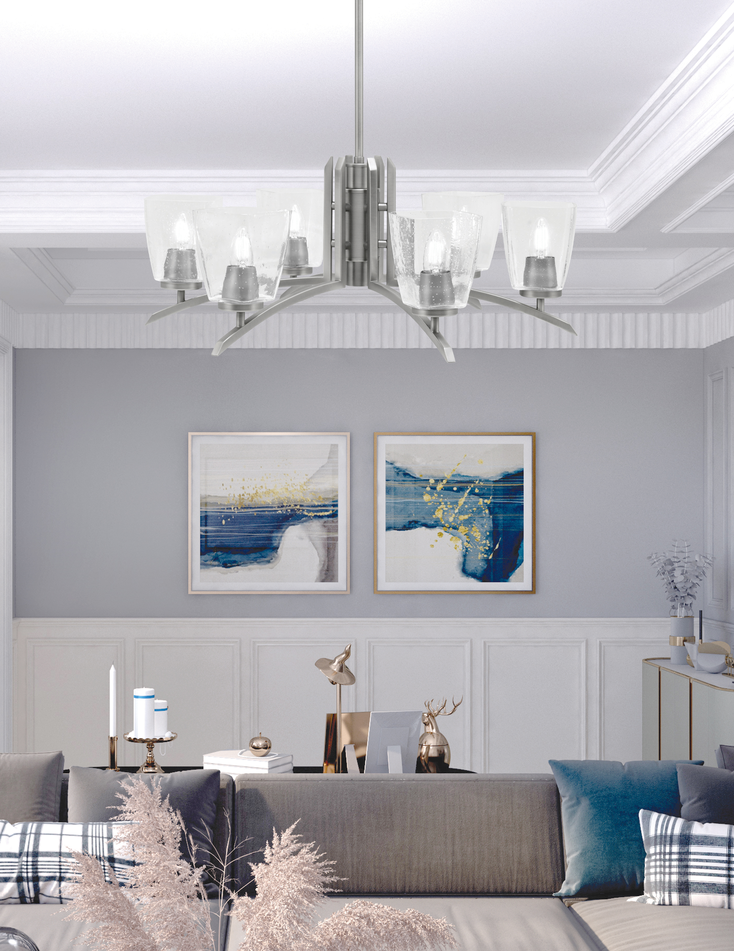 Introducing the Stunning Kurve 6 Light Chandelier, Featuring an Elegant Graphite Finish that Perfectly Enhances Any Space. This Striking Light Fixture Boasts a Unique 4.5″ Square Clear Bubble Glass Design, Adding a Touch of Modern Sophistication to Your Home. Illuminate Your Dining Area or Living Room with the Soft Glow of Six Lights, Creating a Warm and Inviting Atmosphere for Family and Friends.