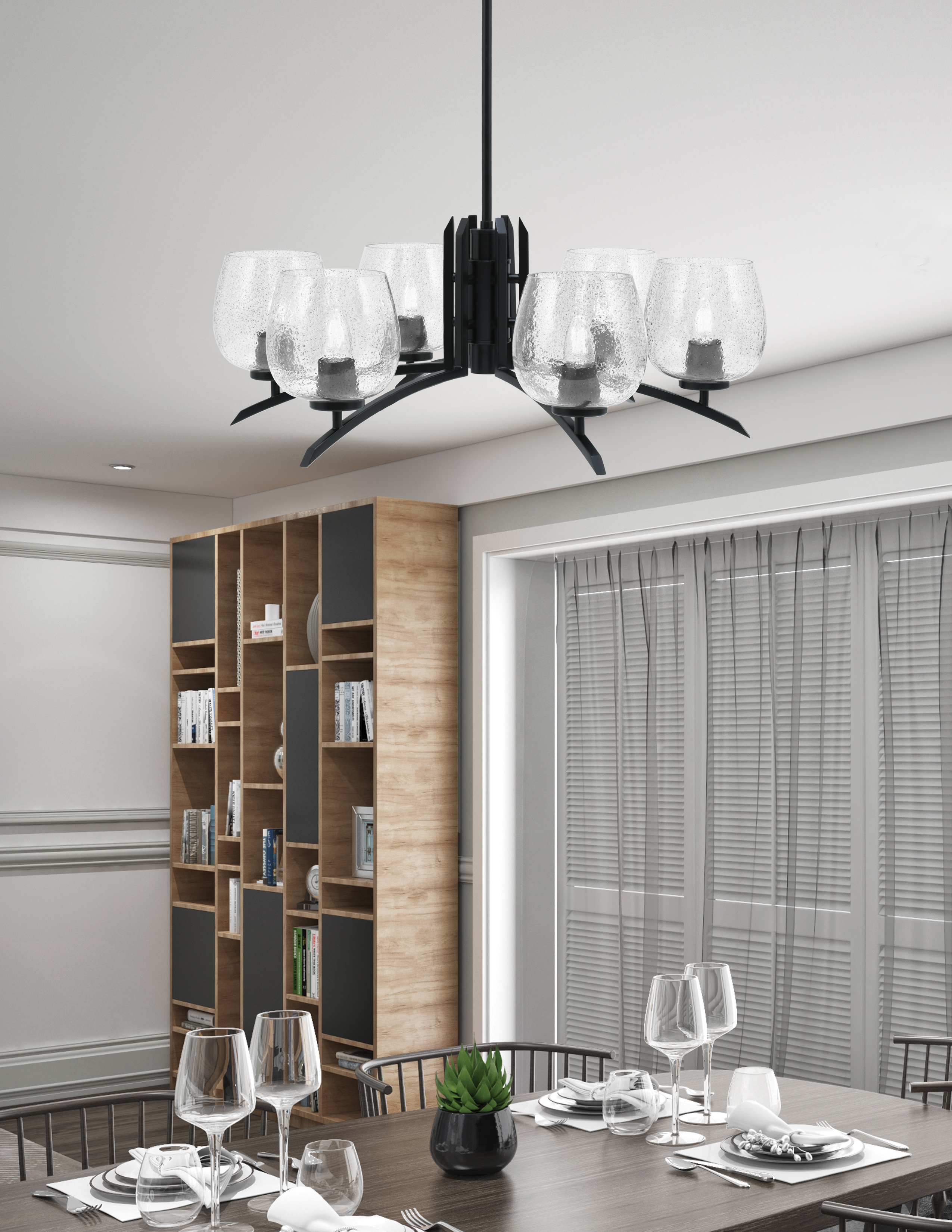 Illuminate Your Space with the Stunning Kurve 6 Light Chandelier. This Elegant Fixture Features a Matte Black Finish that Perfectly Complements the 6″ Smoke Bubble Glass, Creating a Striking Visual Impact. Perfect for Any Modern Home, This Chandelier Adds a Touch of Sophistication and Style to Your Decor.