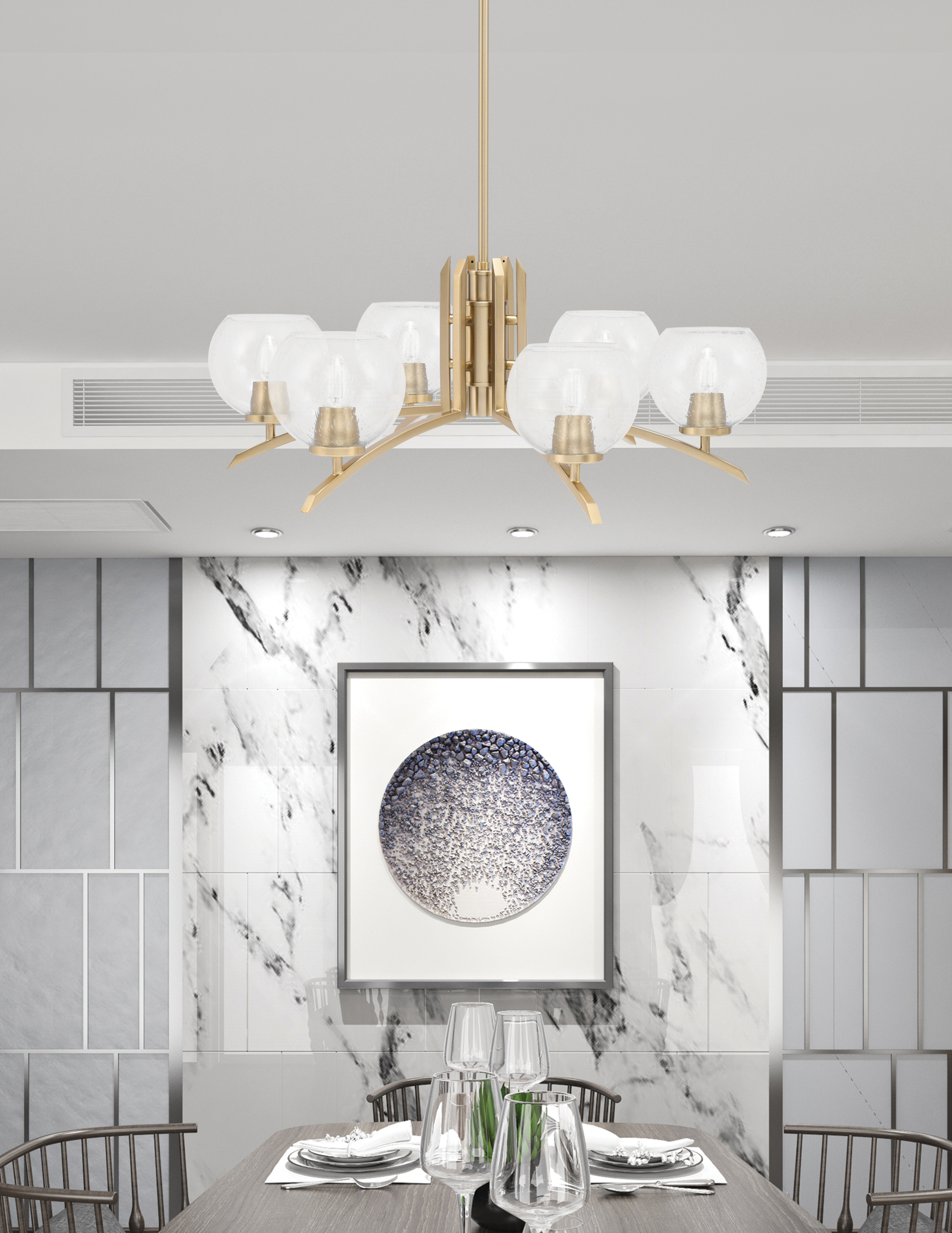 The Kurve 6 Light Chandelier with New Age Brass Finish and 5.75″ Clear Bubble Glass is a sophisticated and stylish addition to any home. Its modern design, elegant curves, and distinctive glass shades ensure it will be a standout feature in your space. Ideal for dining rooms, living rooms, entryways, or bedrooms, this chandelier offers both beauty and practicality.