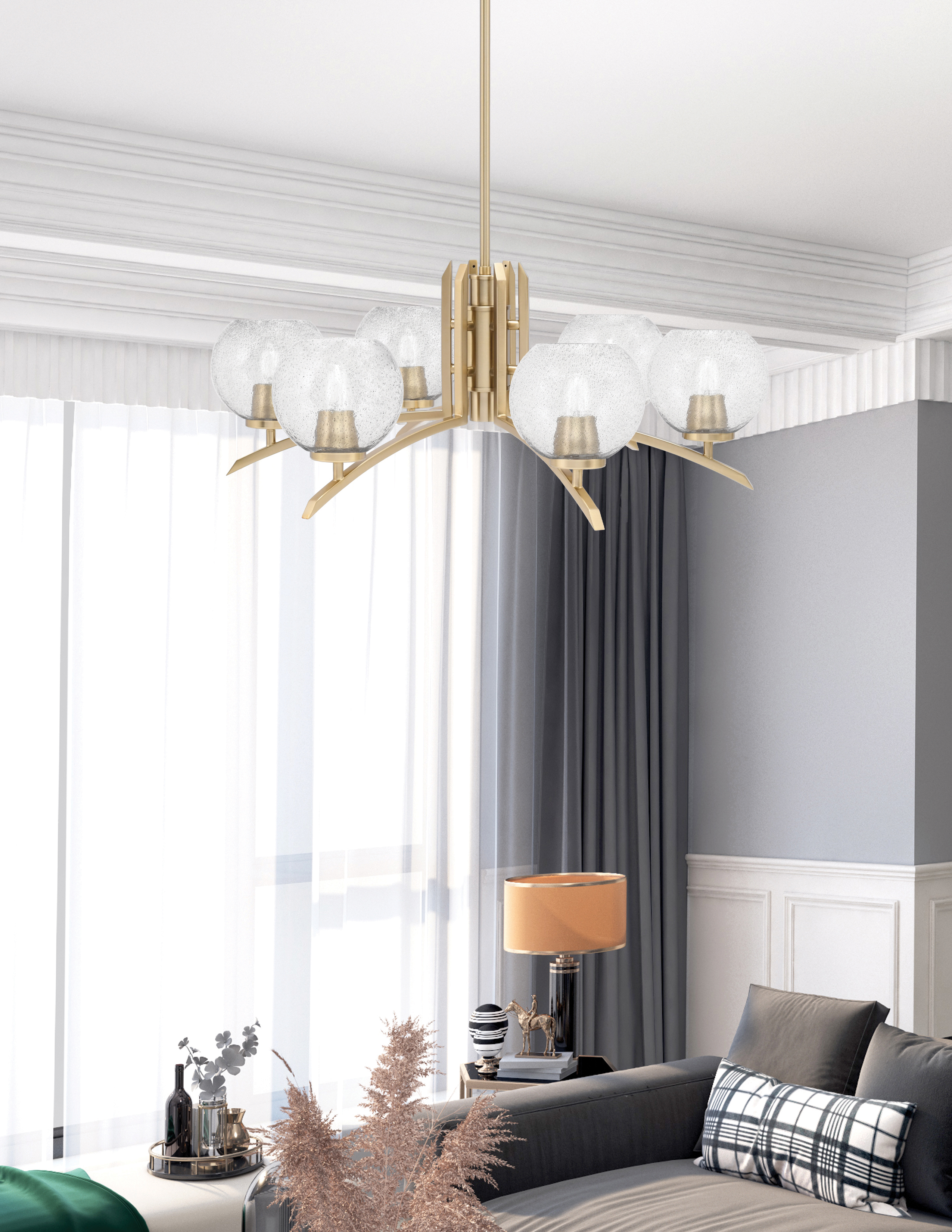 The Toltec Lighting Kurve 6 Light Chandelier with New Age Brass Finish and 5.75″ Smoke Bubble Glass is a stylish and sophisticated lighting fixture that enhances any space. Its modern design, elegant curves, and distinctive glass shades make it a standout feature in your home. Ideal for dining rooms, living rooms, entryways, or bedrooms, this chandelier offers both beauty and functionality.