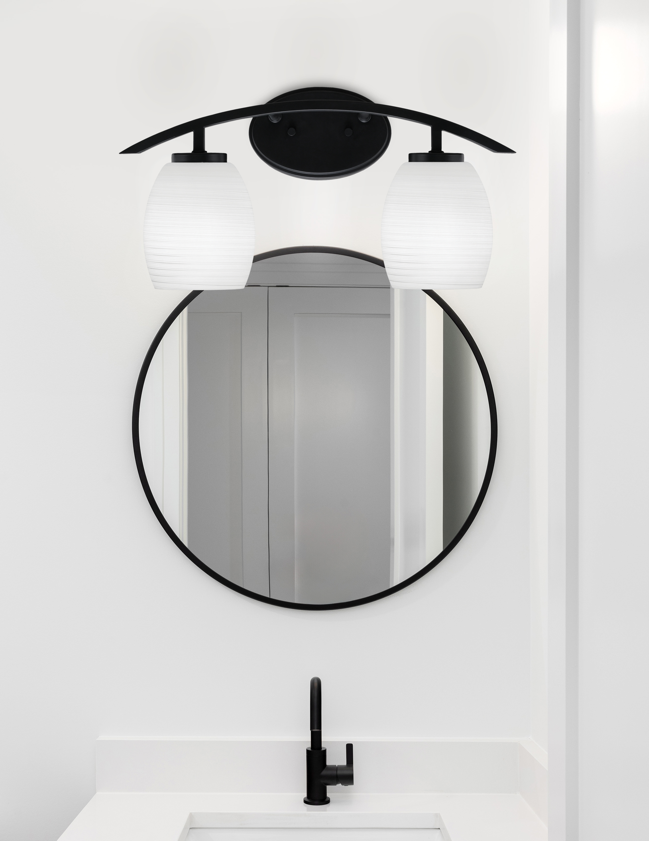 Toltec Lighting 3722-MB-615 Kurve 2 Light Bath Bar, Matte Black Finish, 5″ White Linen Glass