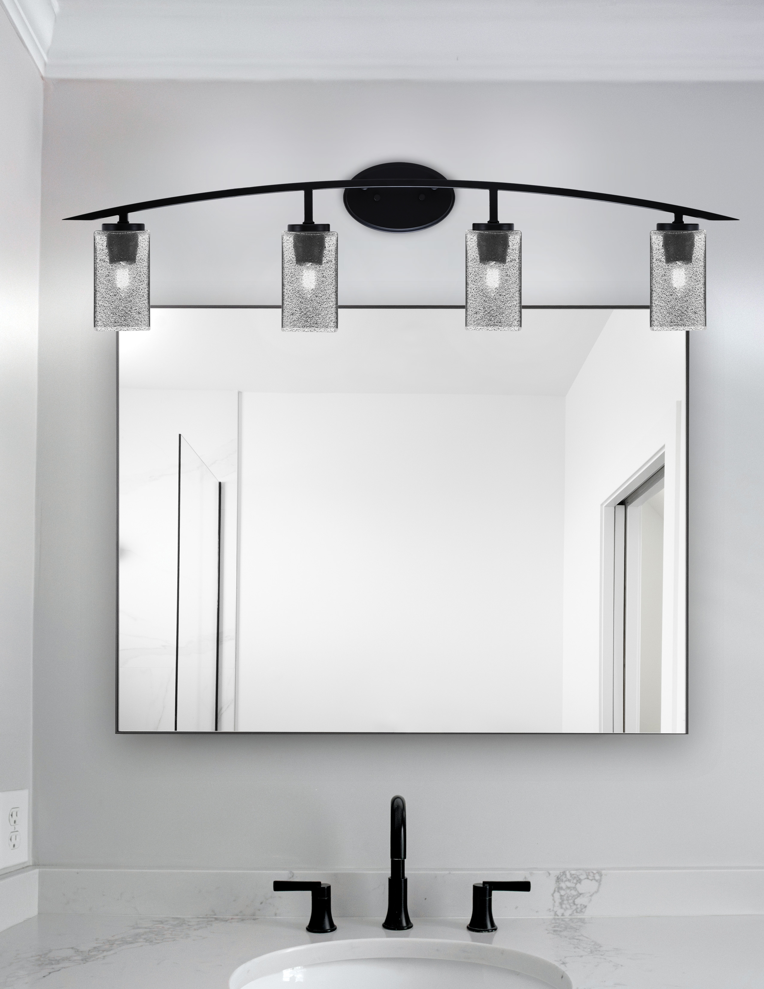 Toltec Lighting 3724-MB-542 Kurve 4 Light Bath Bar, Matte Black Finish, 3.5″ Square Smoke Bubble Glass