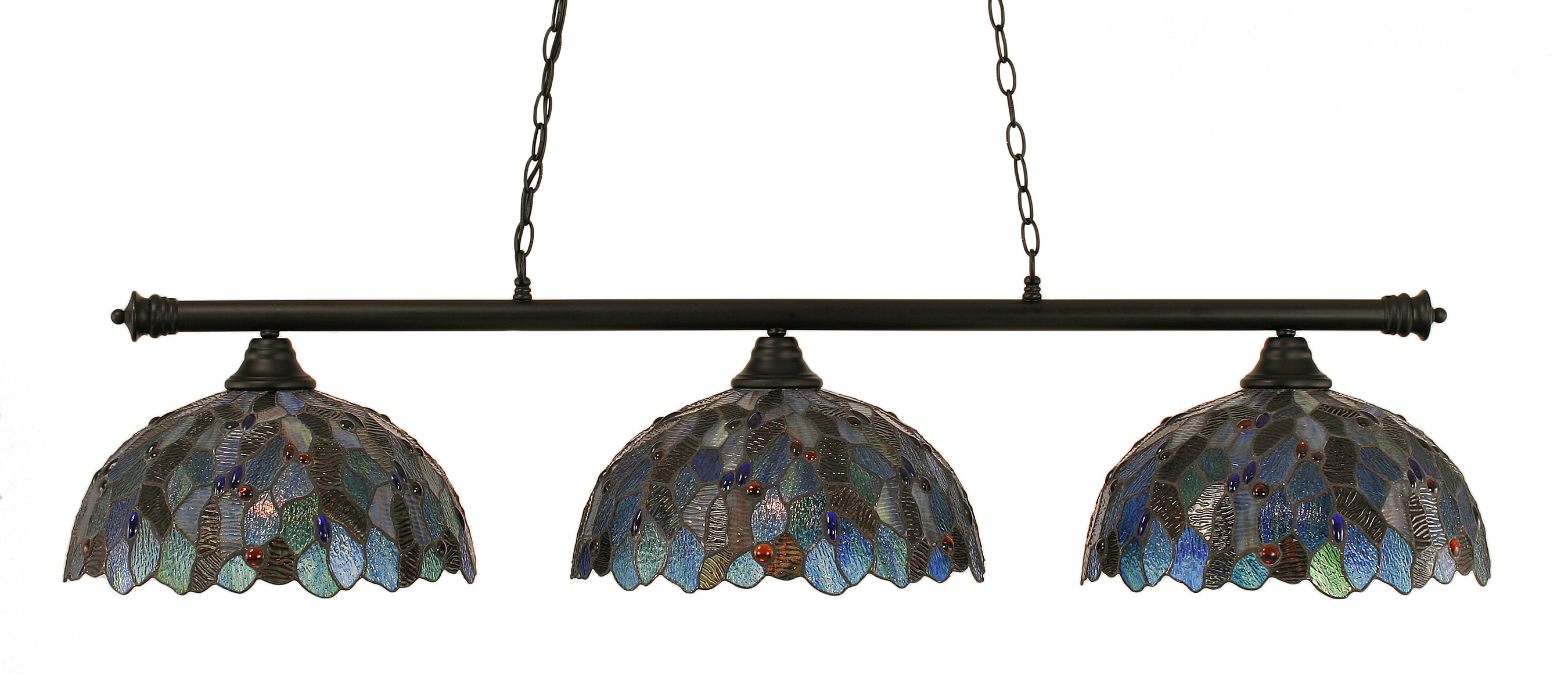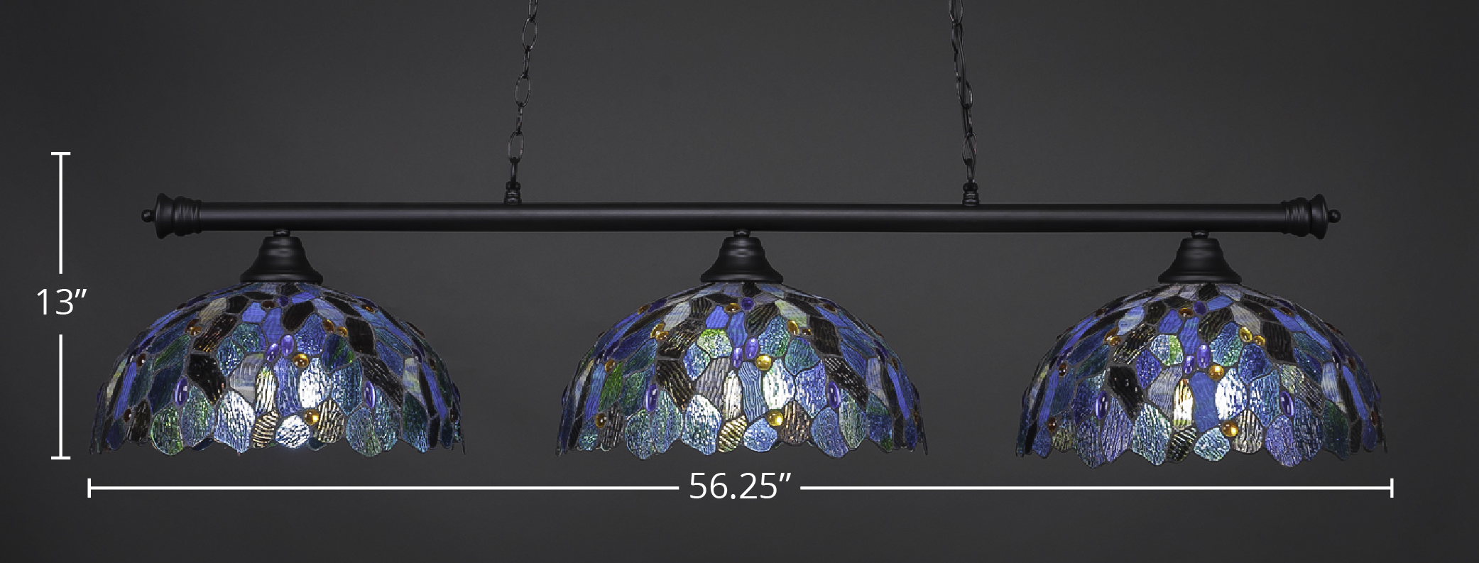 Introducing the Stunning Oxford 3 Light Bar, A Perfect Fusion Of Modern Design And Timeless Elegance. Shown In A Rich Matte Black Finish, This Fixture Features Exquisite 16″ Blue Mosaic Art Glass Shades That Illuminate Your Space With A Brilliant Glow. Ideal For Any Contemporary Setting, The Oxford 3 Light Bar Will Enhance The Ambiance Of Your Home With Its Unique Style And Artistic Flair.