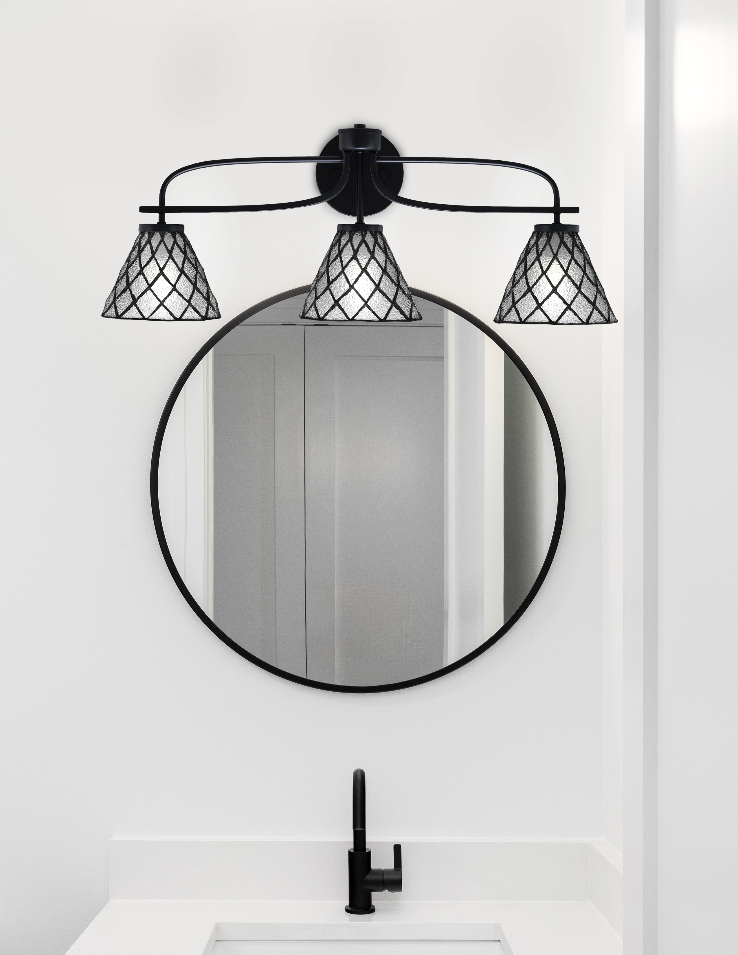 Toltec Lighting 3913-MB-9185 Cavella 3 Light Bath Bar, Matte Black Finish, 7″ Diamond Ice Art Glass