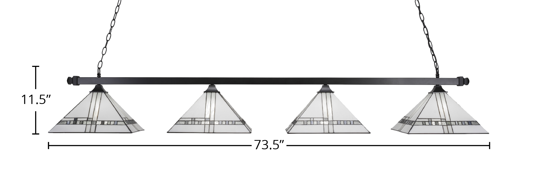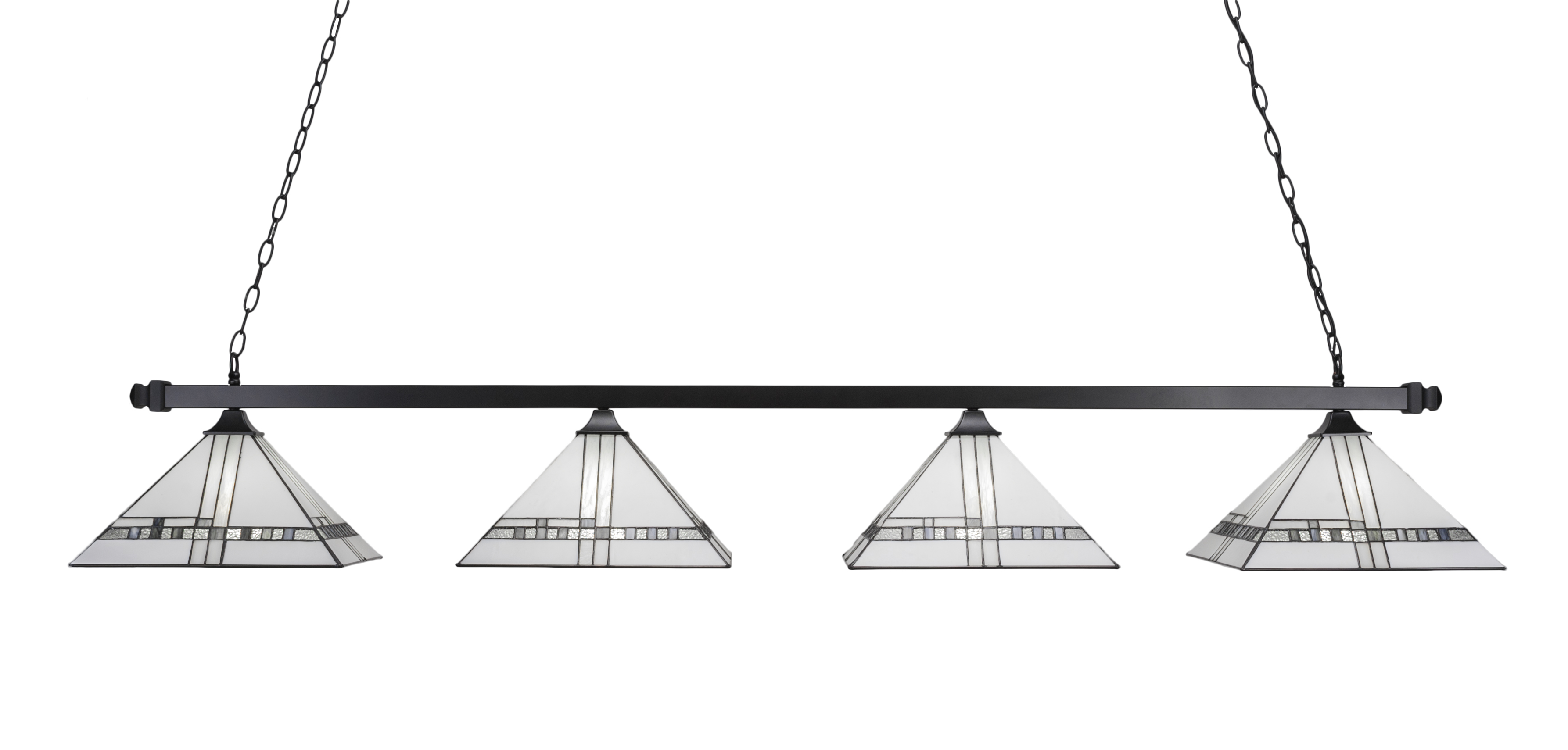 Toltec Lighting 404-MB-955 Square 4 Light Bar, Matte Black Finish, 14″ New Deco Art Glass