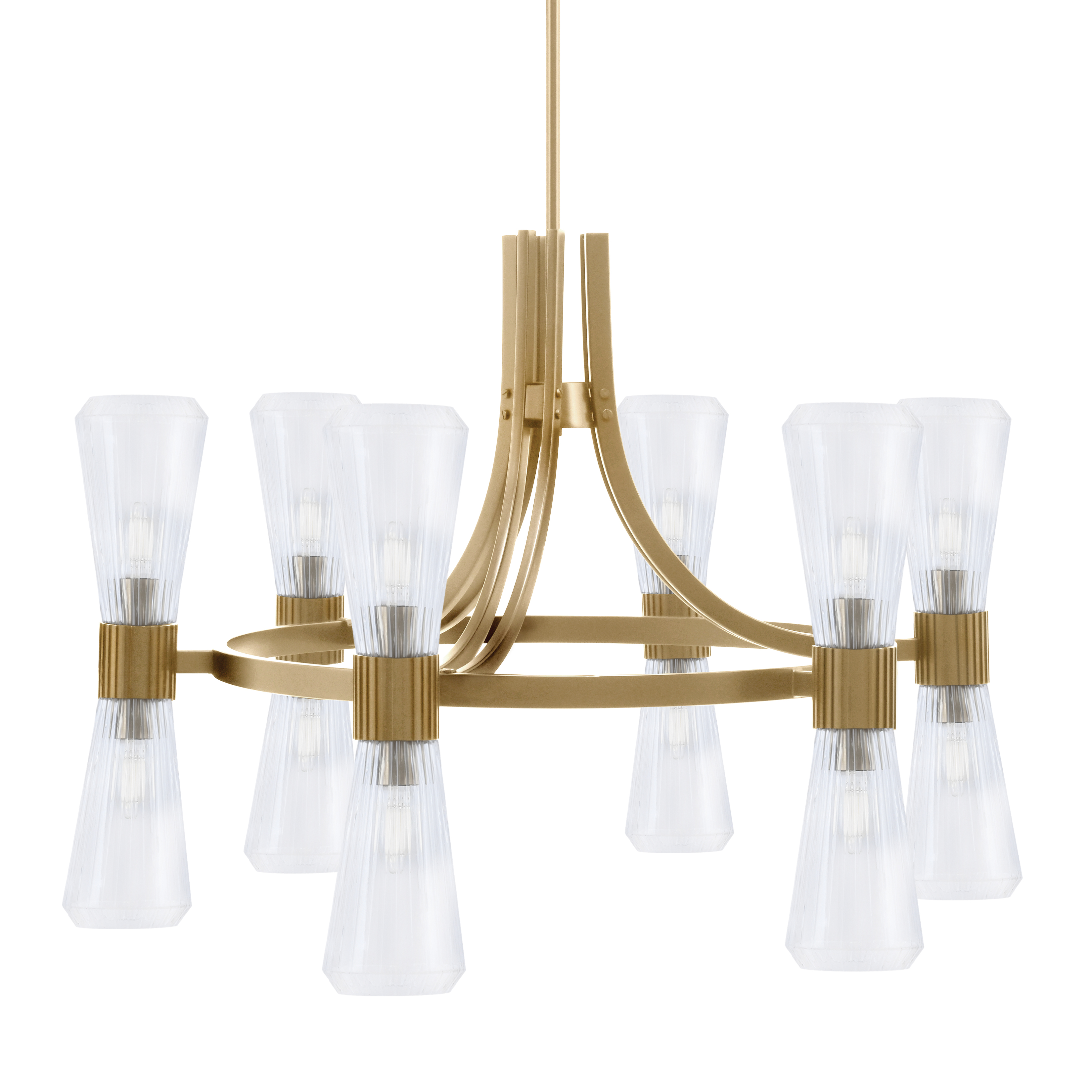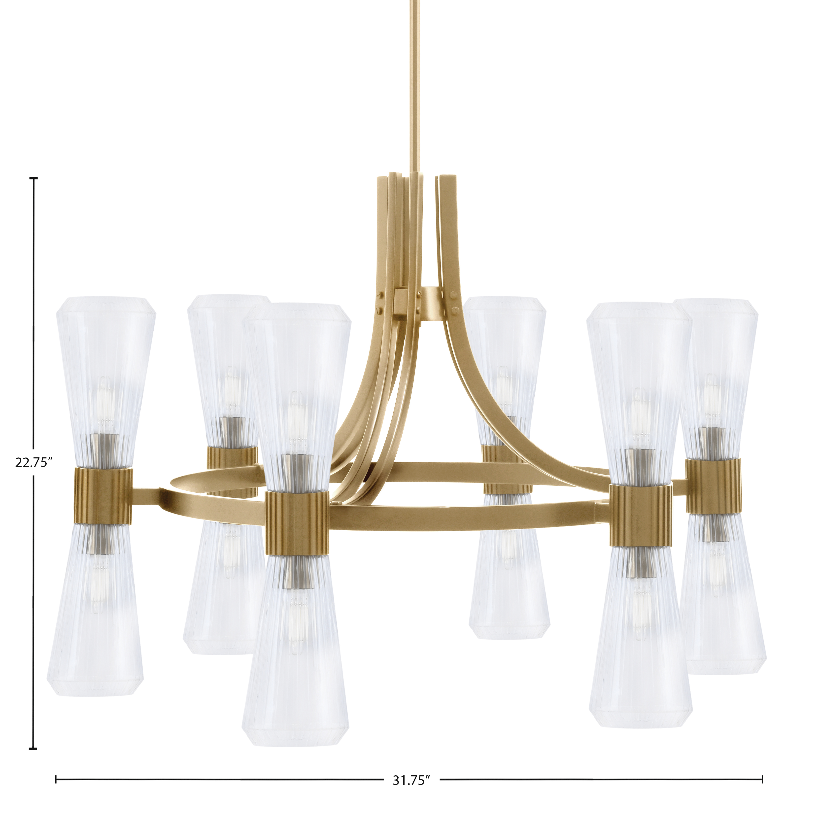 Toltec Lighting 4806-NAB-880 Everleigh 12 Light Chandelier, New Age Brass Finish, 4″ Clear Ribbed Glass
