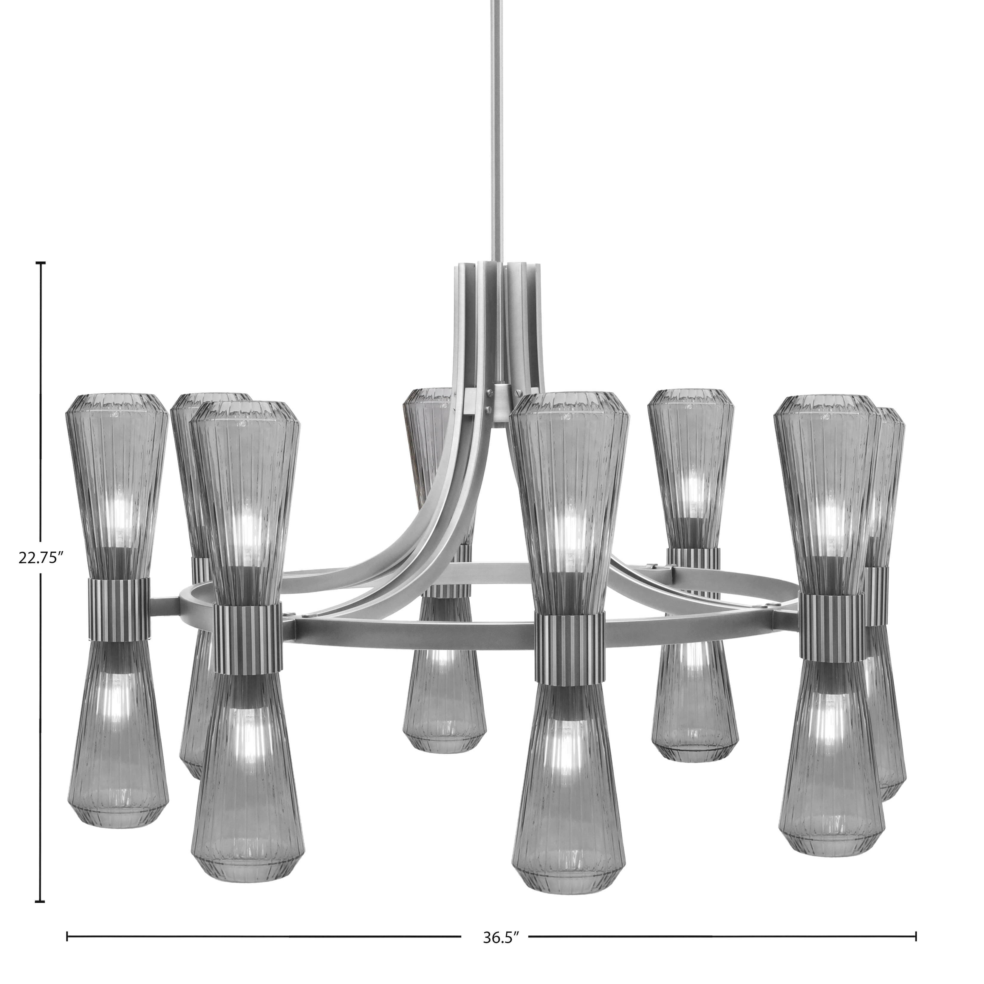 Toltec Lighting 4808-GP-882 Everleigh 16 Light Chandelier, Graphite Finish, 4″ Smoke Ribbed Glass
