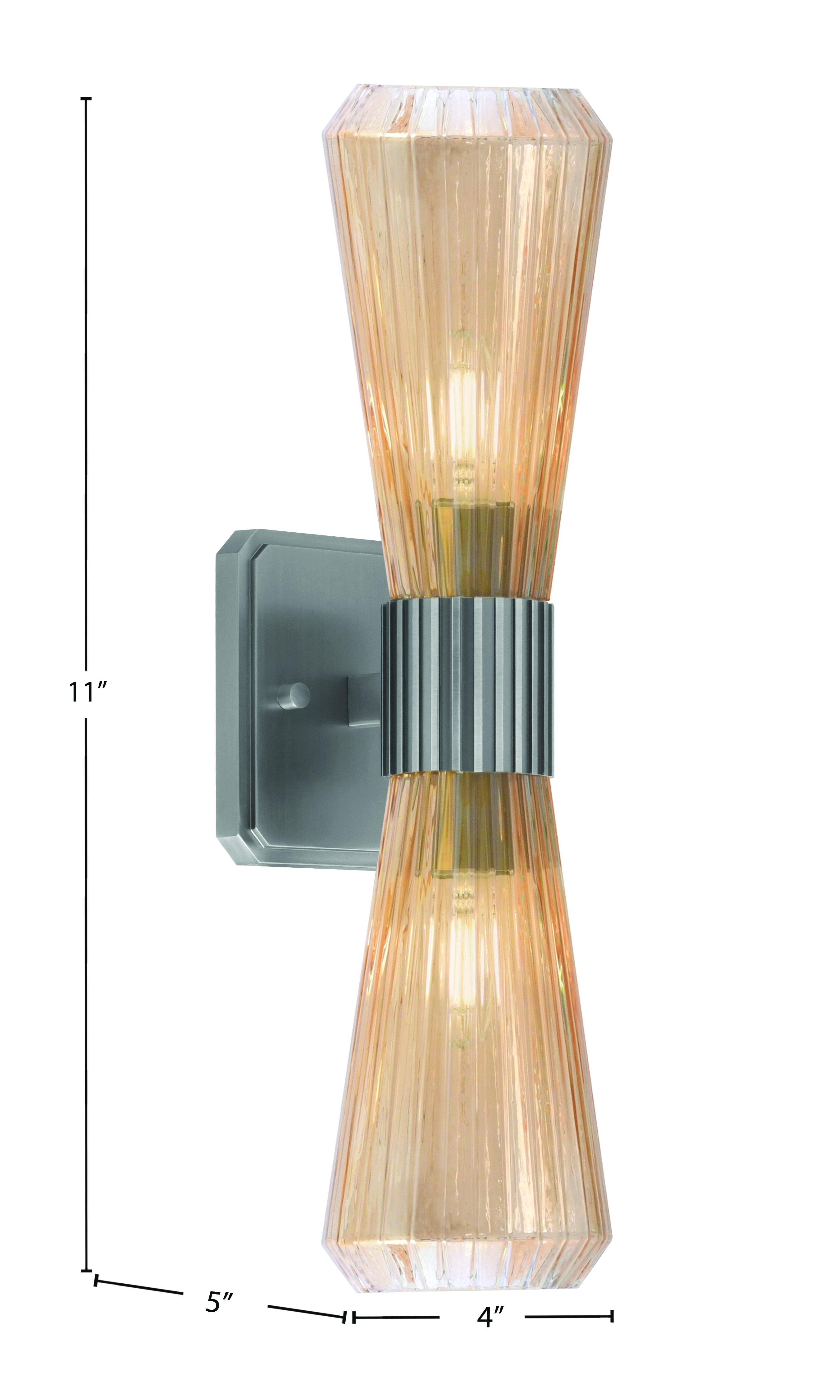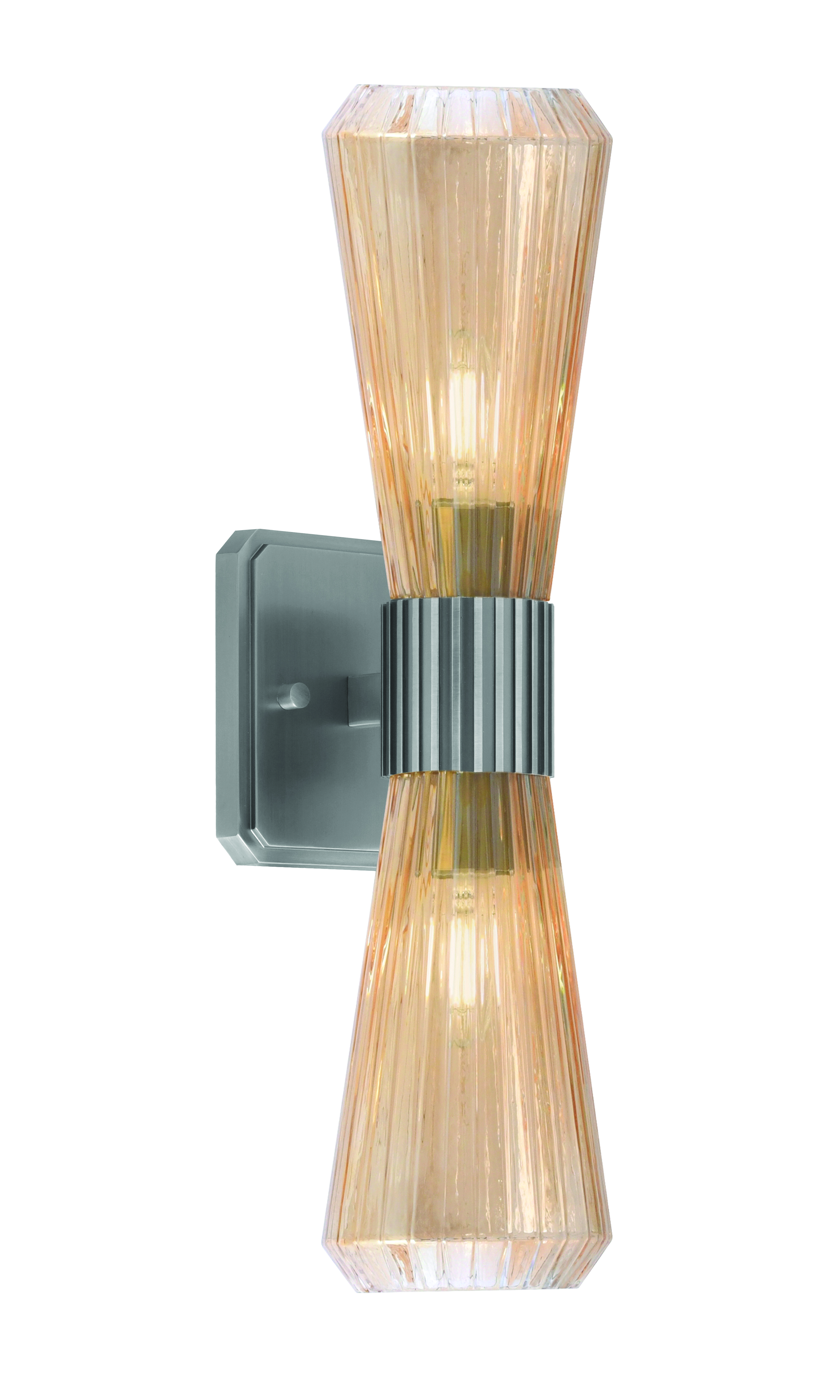 Toltec Lighting 4820-GP-883 Everleigh 2 Light Wall Sconce, Graphite Finish, 4″ Amber Ribbed Glass