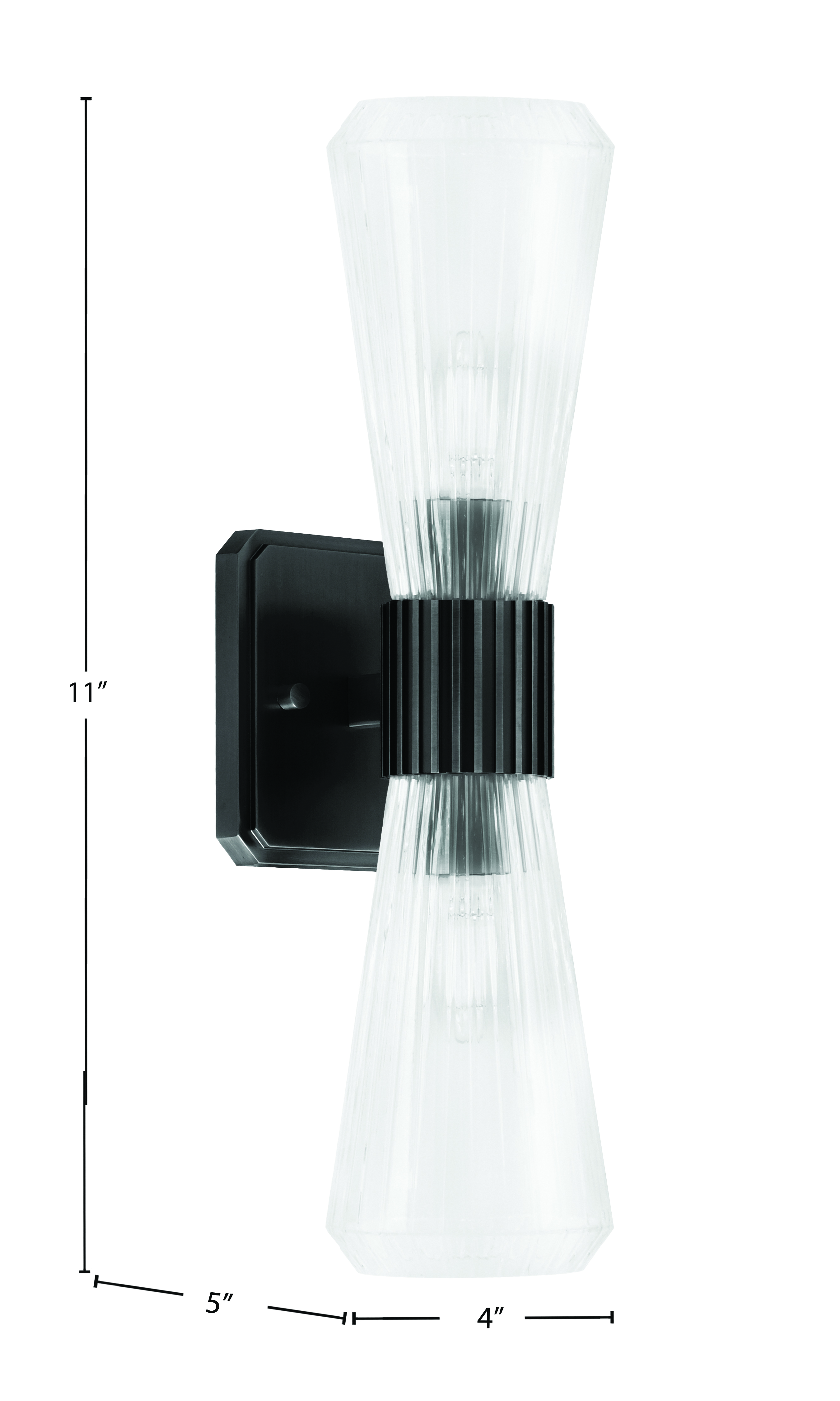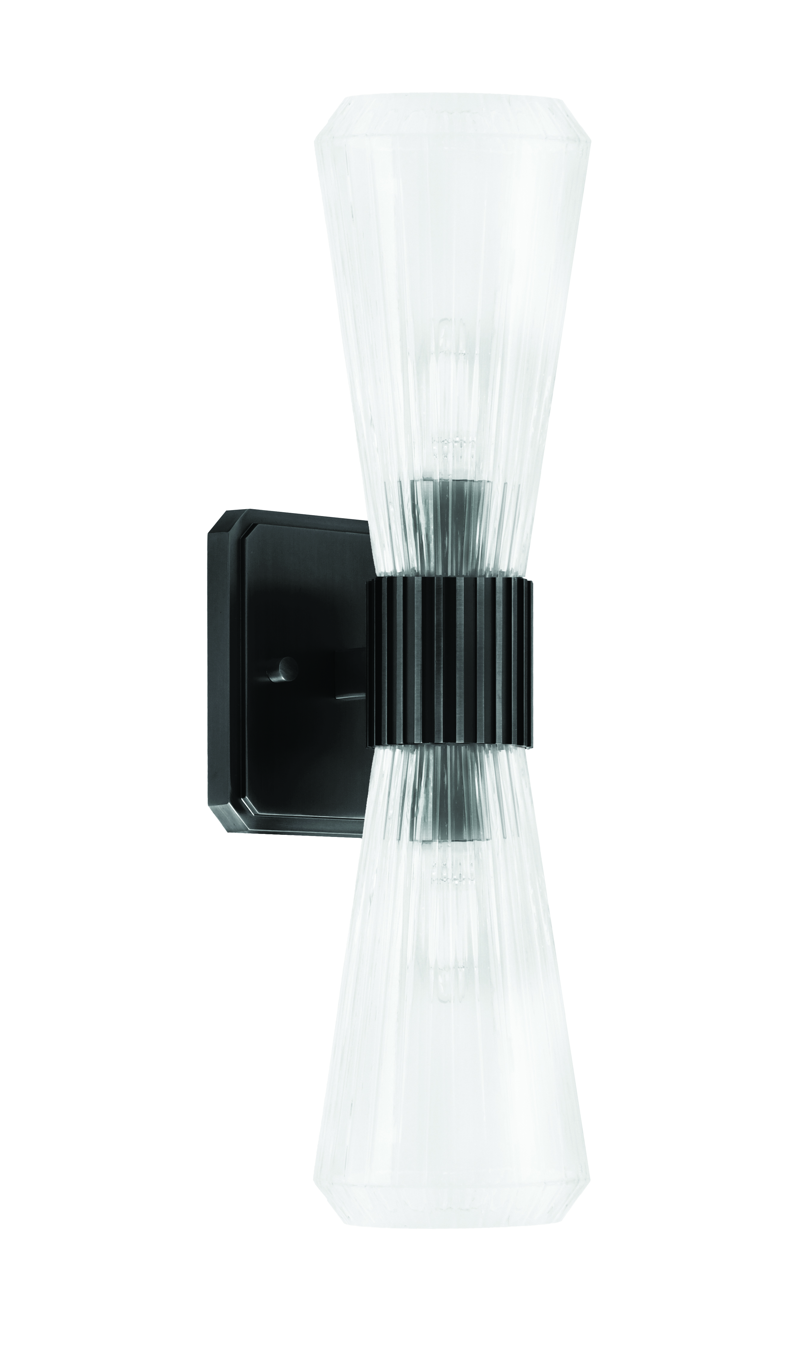 Toltec Lighting 4820-MB-880 Everleigh 2 Light Wall Sconce, Matte Black Finish, 4″ Clear Ribbed Glass
