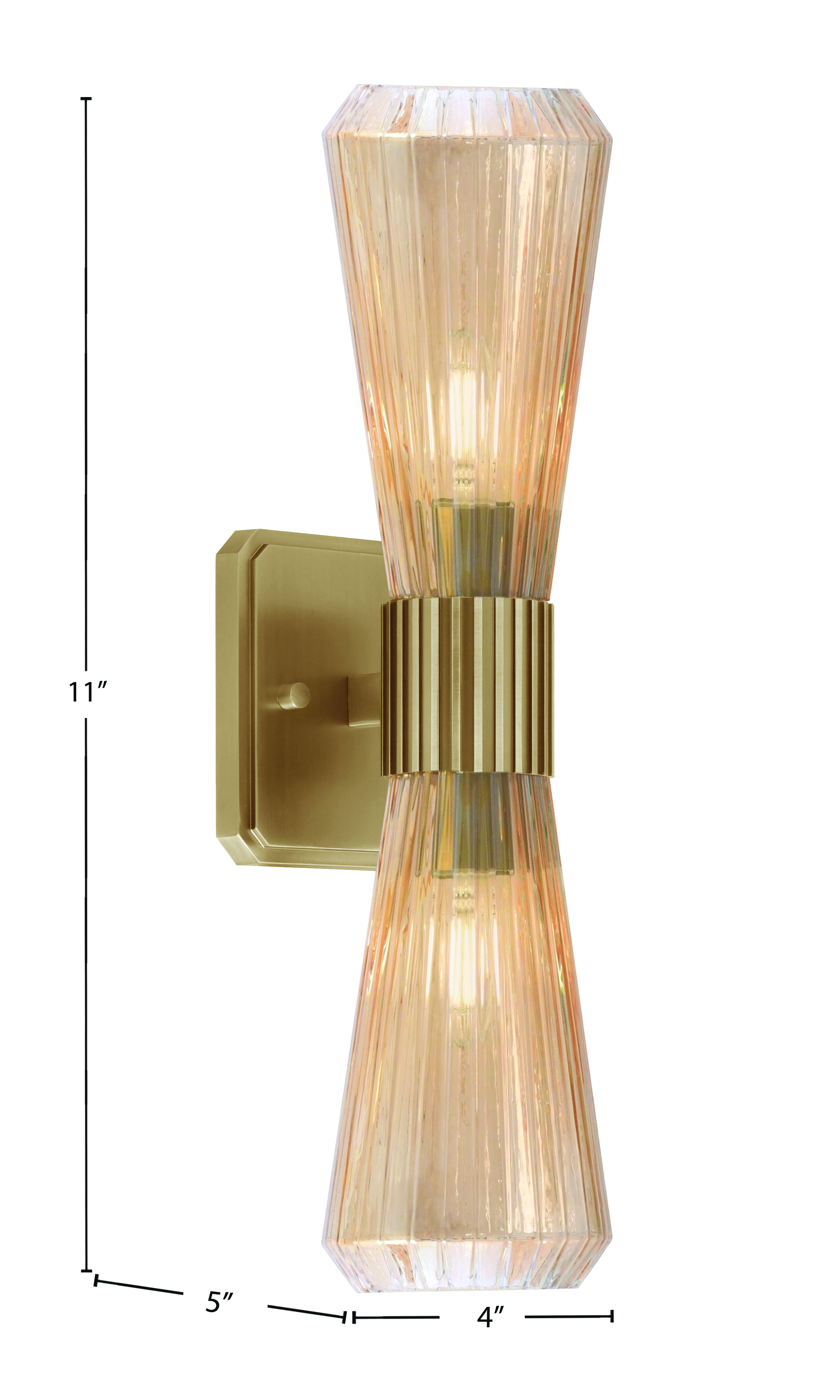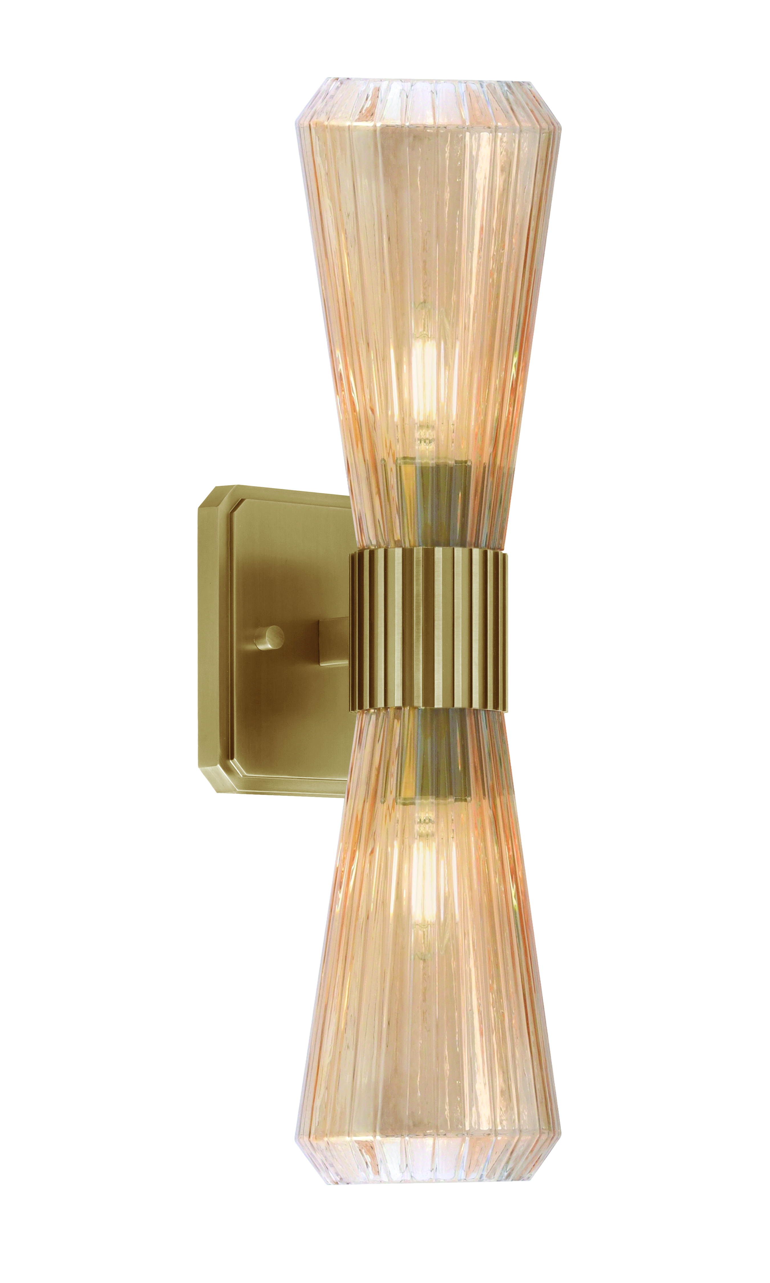 Toltec Lighting 4820-NAB-883 Everleigh 2 Light Wall Sconce, New Age Brass Finish, 4″ Amber Ribbed Glass