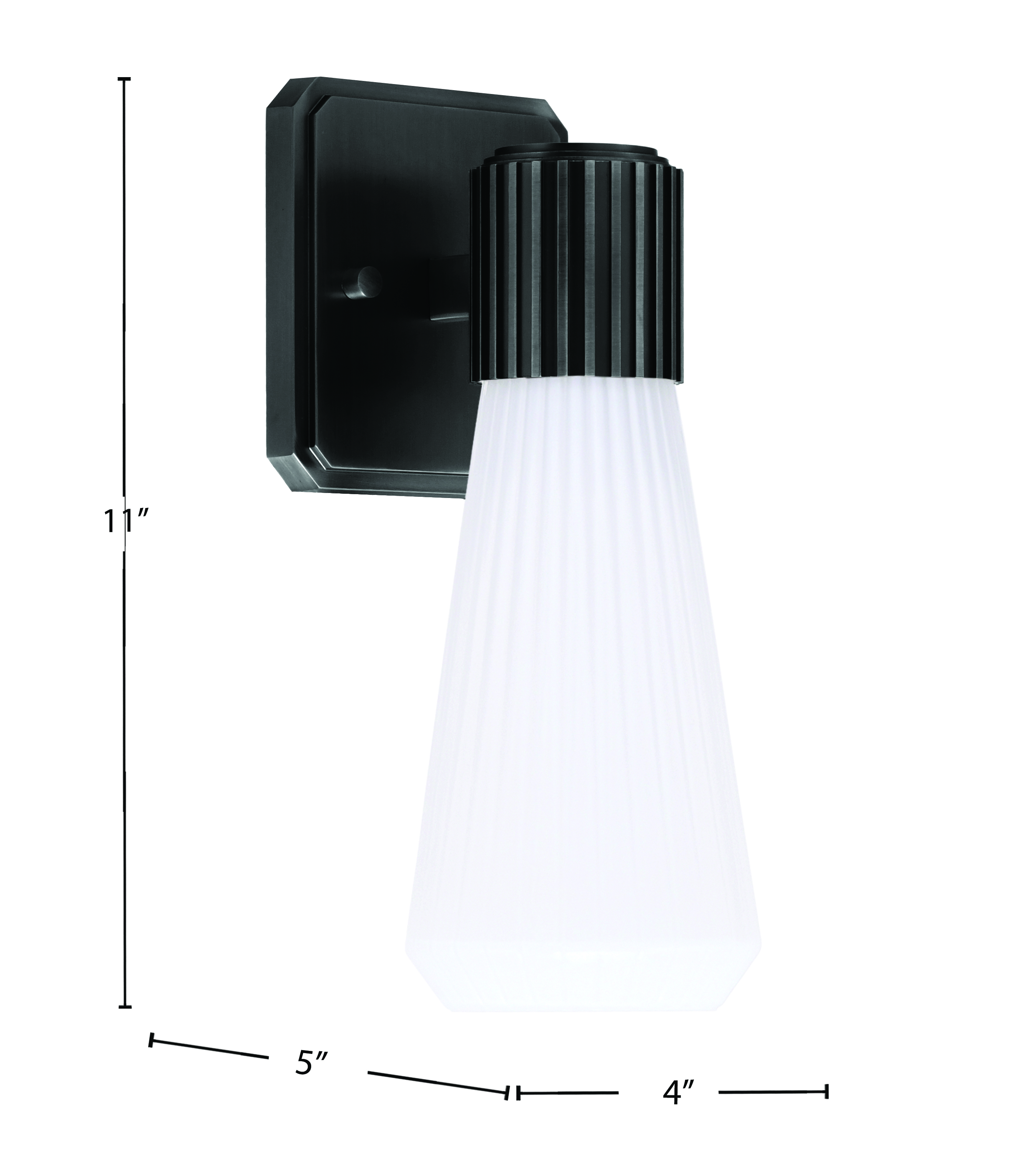 Toltec Lighting 4821-MB-881 Everleigh Wall Sconce, Matte Black Finish, 4″ White Opal Ribbed Glass