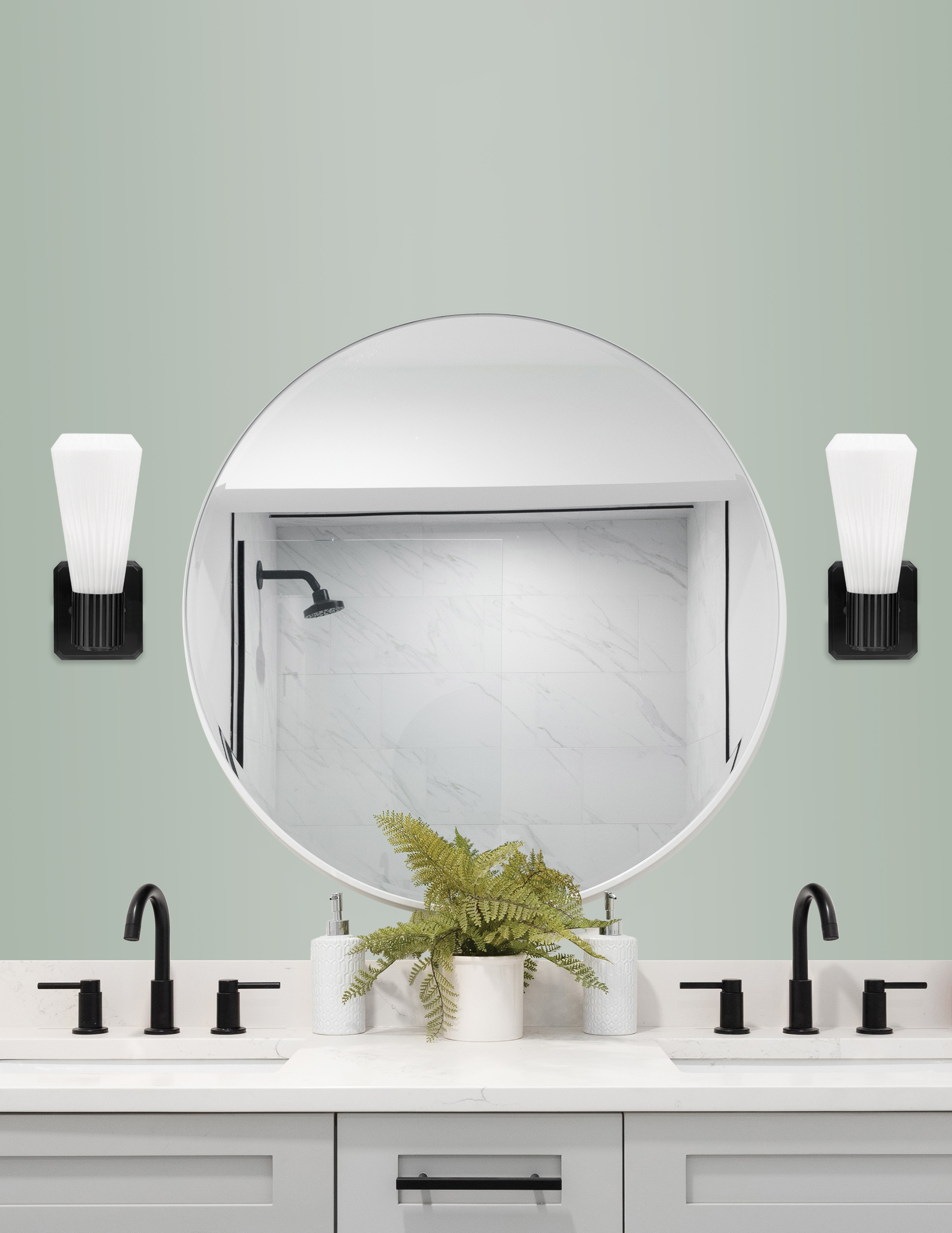 Bring sleek, modern sophistication to your space with the Everleigh Wall Sconce. The striking Matte Black Finish adds a bold, contemporary touch, making it an ideal fixture for both modern and transitional interiors. Paired with a clean 4″ White Glass shade, this wall sconce offers soft, ambient lighting that creates a warm and inviting atmosphere.