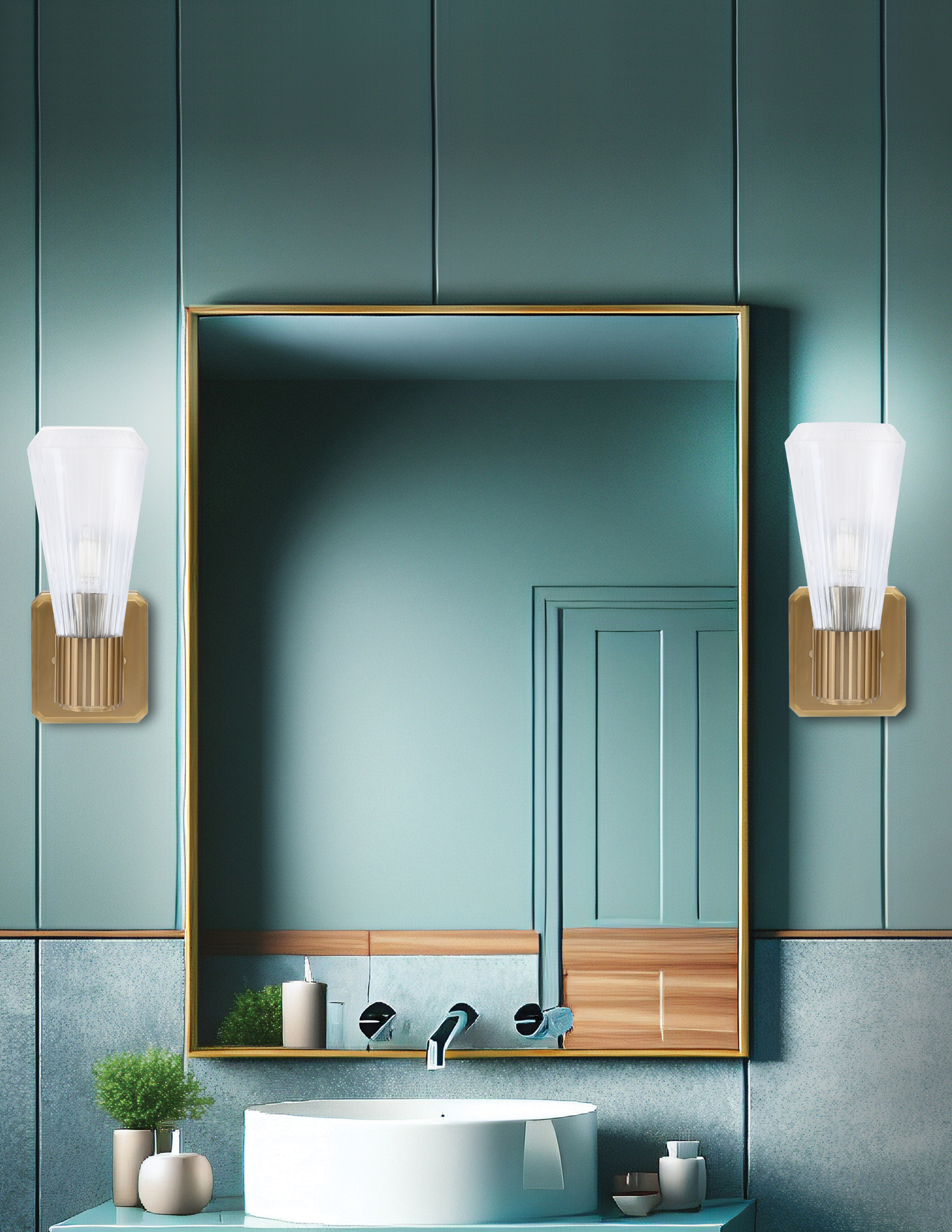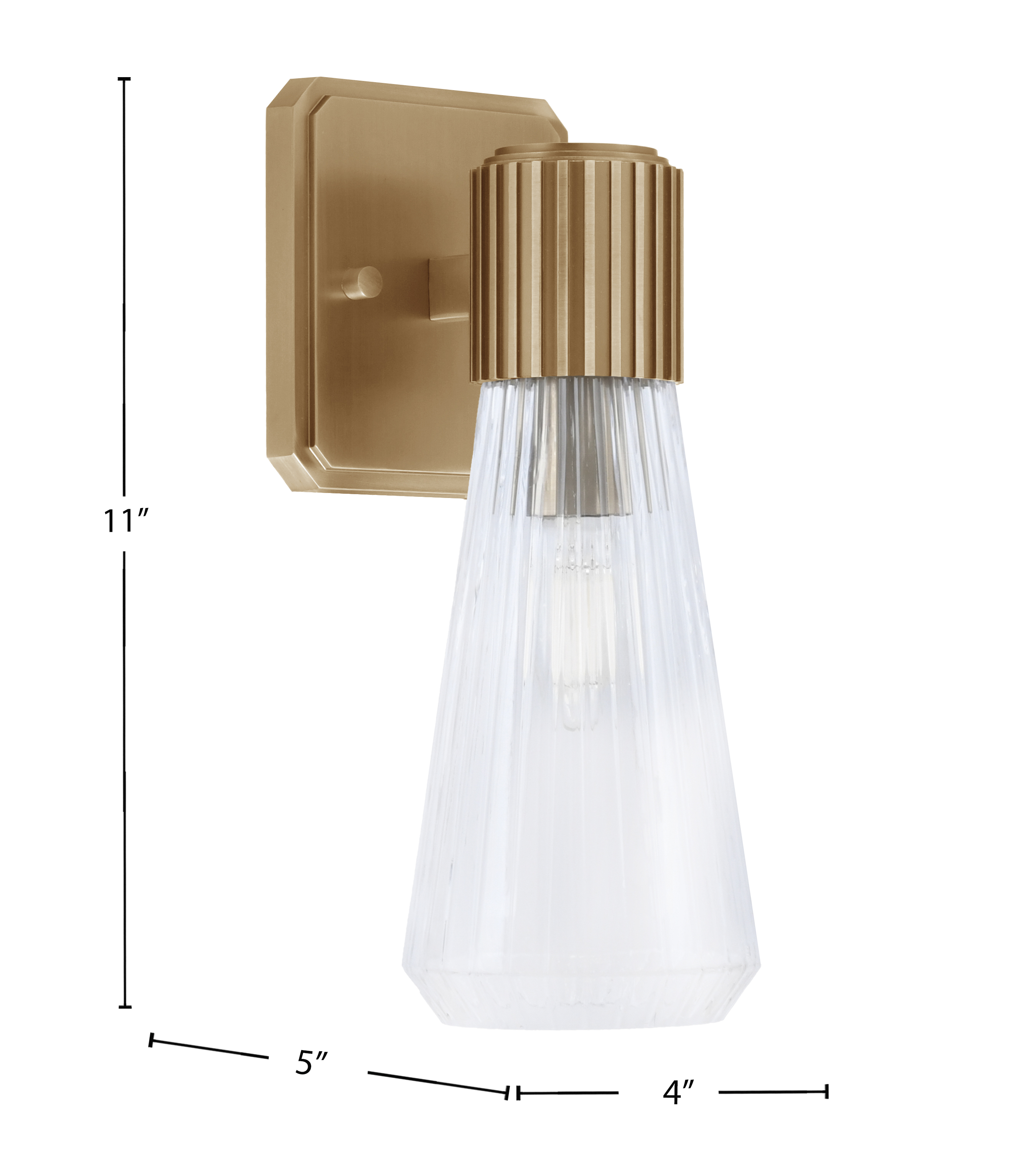 Combining modern appeal with classic detailing, this wall sconce pairs a New Age Brass Finish with Clear Ribbed Glass. The softly filtered light brightens spaces without overpowering them, making it perfect for layered lighting designs. Ideal for accent walls, hallways, or bathrooms, it blends sleek design with welcoming illumination.