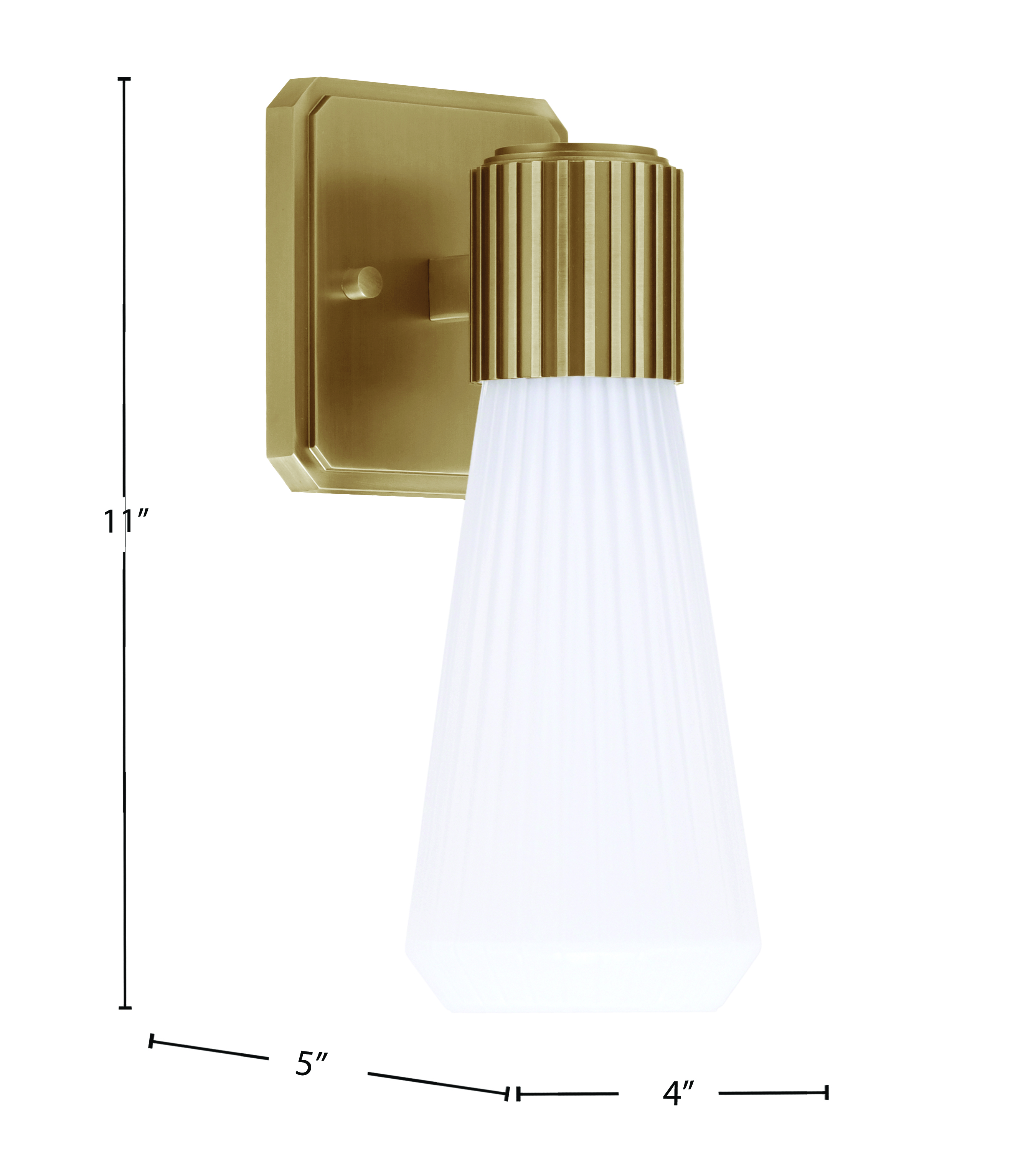 Toltec Lighting 4821-NAB-881 Everleigh Wall Sconce, New Age Brass Finish, 4″ White Opal Ribbed Glass