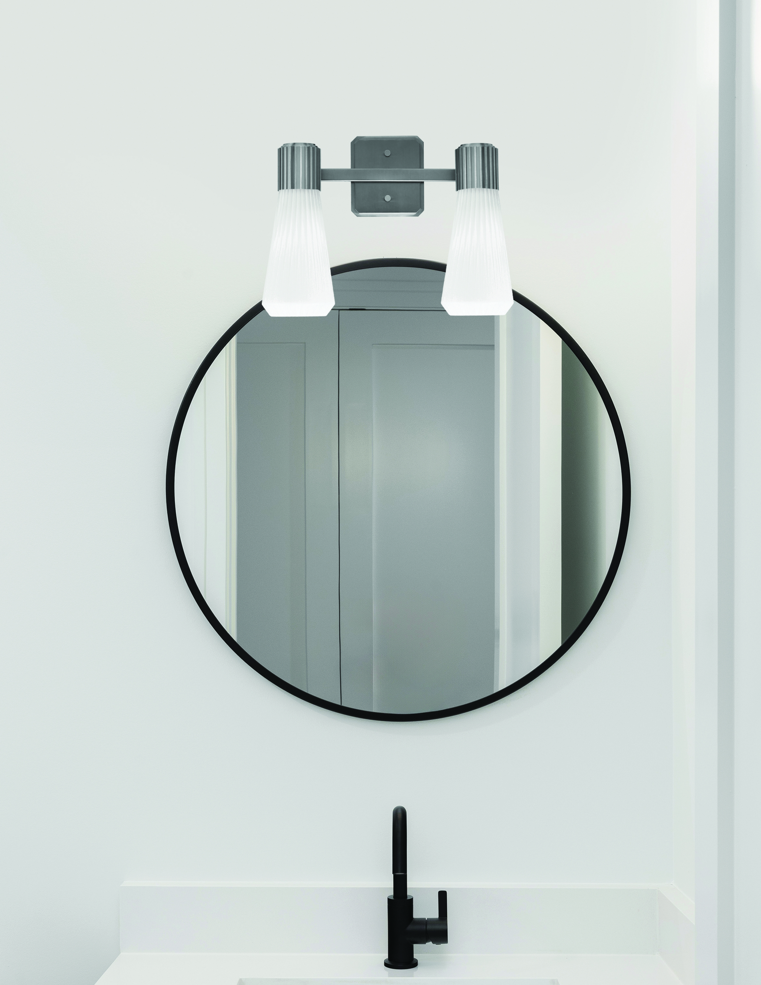 Elevate the ambiance of your bathroom with the sleek and modern Everleigh 2 Light Bath Bar. Featuring a bold Graphite Finish, this fixture brings a contemporary industrial look that pairs beautifully with any modern bathroom decor. The two 4″ White Glass shades offer soft, even lighting, perfect for creating a clean and relaxing atmosphere.