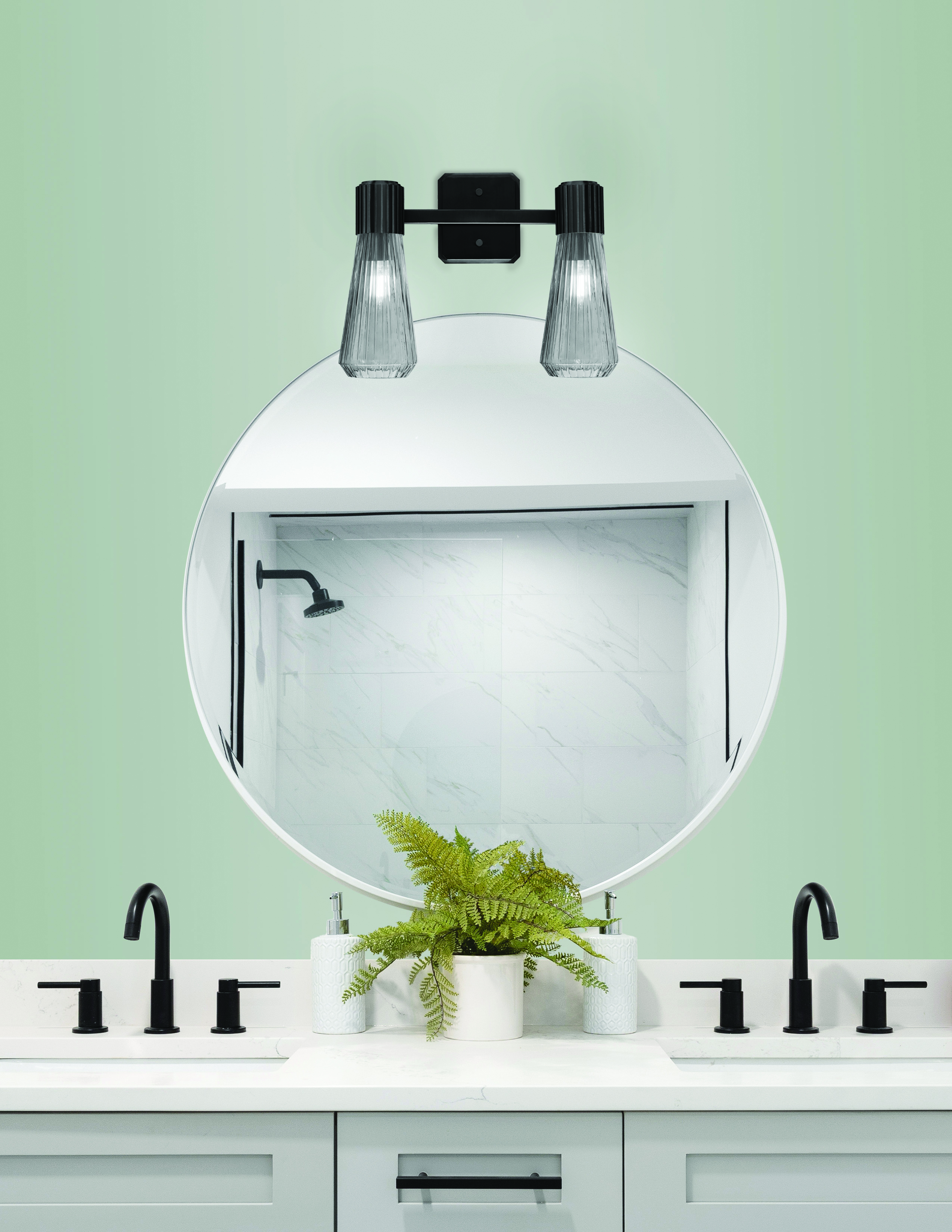 Bring a touch of modern sophistication to your bathroom with the Everleigh 2 Light Bath Bar. Featuring a bold Matte Black Finish, this fixture adds a sleek, industrial feel to your space. The 4″ Smoke Glass shades provide a soft, atmospheric glow making it a striking addition to any contemporary or industrial-themed bathroom.